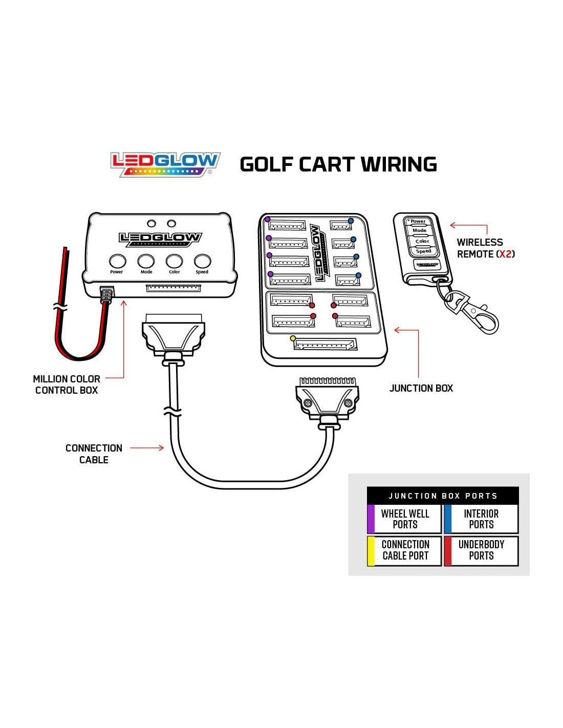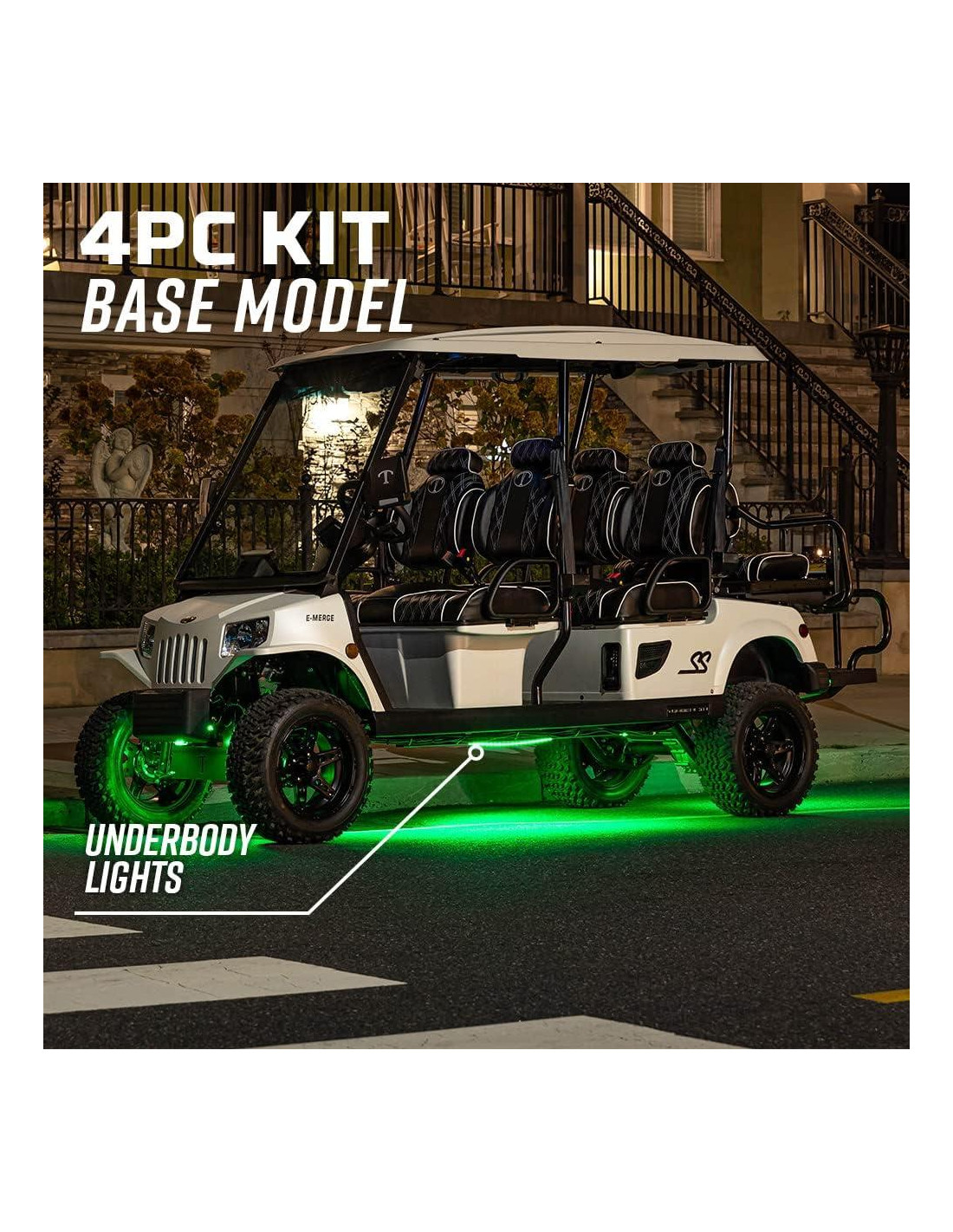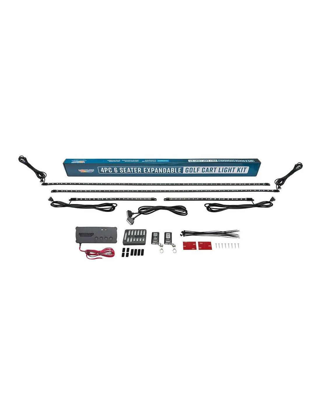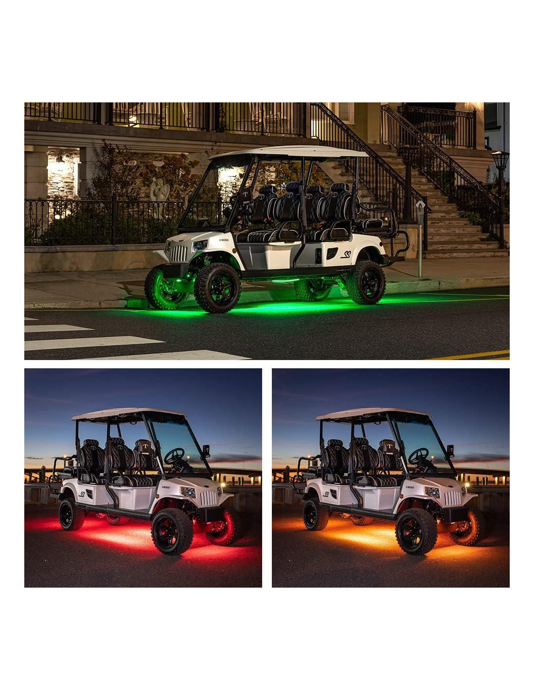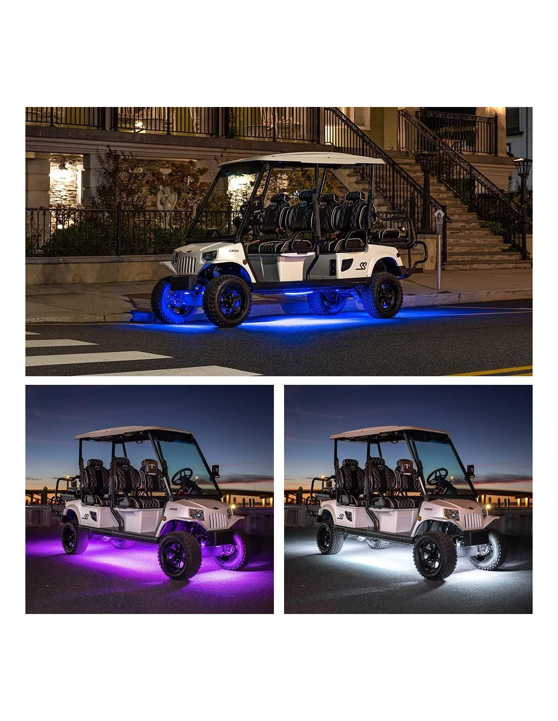 - Kit de Bajo Cuerpo LEDGlow de 4 Piezas Expandible de Color Millón SMD LED para Carro de Golf Eléctrico de 6 Pasajeros Crea Iluminación de Acento Multicolor Vibrante que es Compatible con Cualquier Carro de Golf Eléctrico de 12 Voltios, 36 Voltios, 48 Voltios o 72 Voltios