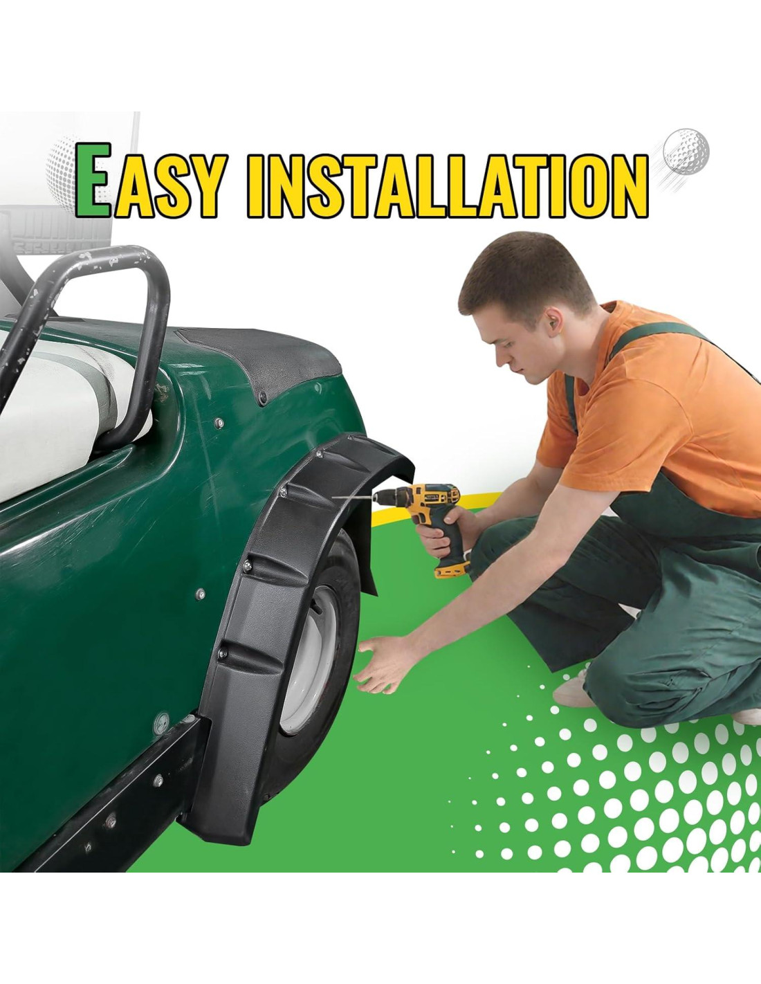 Se adapta a los cuerpos estándar y sin modificar del Yamaha Golf Cart G14, G16, G19, G20, G22 solamente. Incluye 4 extensiones de guardabarros delanteros y traseros con hardware de montaje; no es para carritos personalizados.