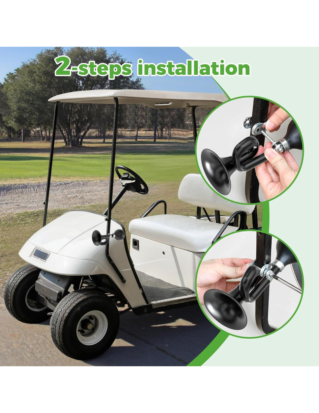 - Accesorios Universales para Carritos de Golf: El claxon para carrito de golf no solo es para carritos de golf Yamaha, EZGO y Club Car, sino también para bicicletas, motocicletas y más. Diseño Vintage para Vehículos Decorativos.