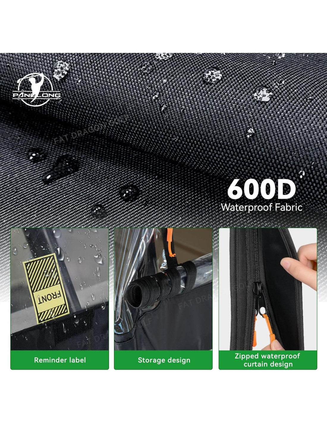 - Cubierta de Enclosure Precedent Multifuncional: Cuatro lados están equipados con conveniente puerta de cremallera de almacenamiento de pvc enrollable - el frente puede ventilarse al conducir, los lados son fáciles de entrar y salir del carro, y la parte trasera es fácil de tomar y poner. Las puertas con cremallera son impermeables para prevenir daños por inmersión en agua y están equipadas con sujetadores de velcro para su tranquilidad