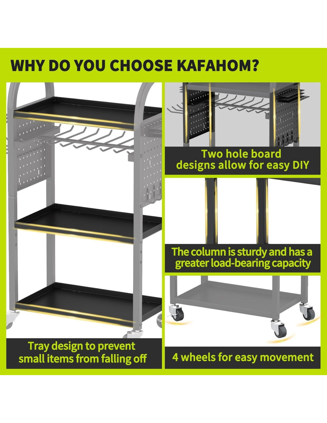 - MOVIBLE Y FLEXIBLE: Lo has leído bien: es un Estante de Almacenamiento de Herramientas Eléctricas de Metal de Alta Resistencia de 4 Capas que puede moverse a cualquier lugar. ¡Las cuatro ruedas de 360 del Organizador de Herramientas KAFAHOM para Almacenamiento pueden ser bloqueadas y moverse libremente para satisfacer tus necesidades! Ya no solo para uso diario en interiores, el carro de herramientas rodante ahora es perfecto para diversos entornos industriales, incluidos entornos al aire libre como campos de trabajo en el patio trasero, talleres de garaje o escenas profesionales.