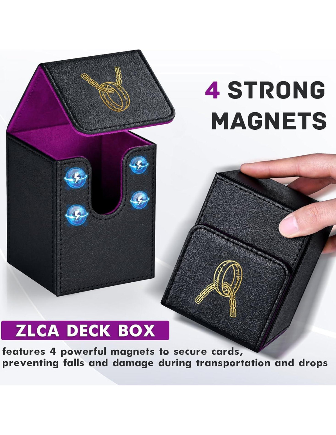- Tamaño de la caja de barajas ZLCA 100 - 3.1*3.2*4.1 inches (7,87*8,13*10,41 cm), acomoda hasta 100 cartas de juego de tamaño estándar con manga individual o 200 cartas nuevas sin manga. No compatible con Top loaders