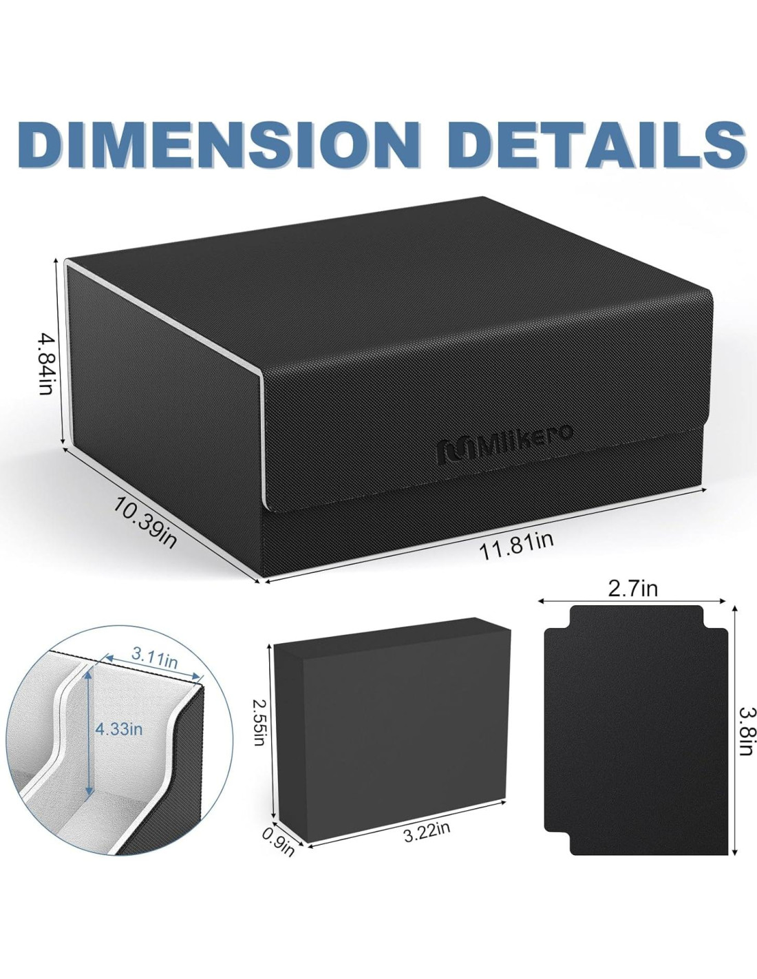- Almacenamiento de Gran Capacidad Con dimensiones de 11.8x10.4x4.84 inches (30,00x26,42x12,27 cm), la caja de cartas acomoda sin esfuerzo más de 1800 cartas con funda, 450+ cargadores superiores (35PT), y 100+ soportes de cartas magnéticas (35PT), satisfaciendo todas tus necesidades de almacenamiento de cartas.