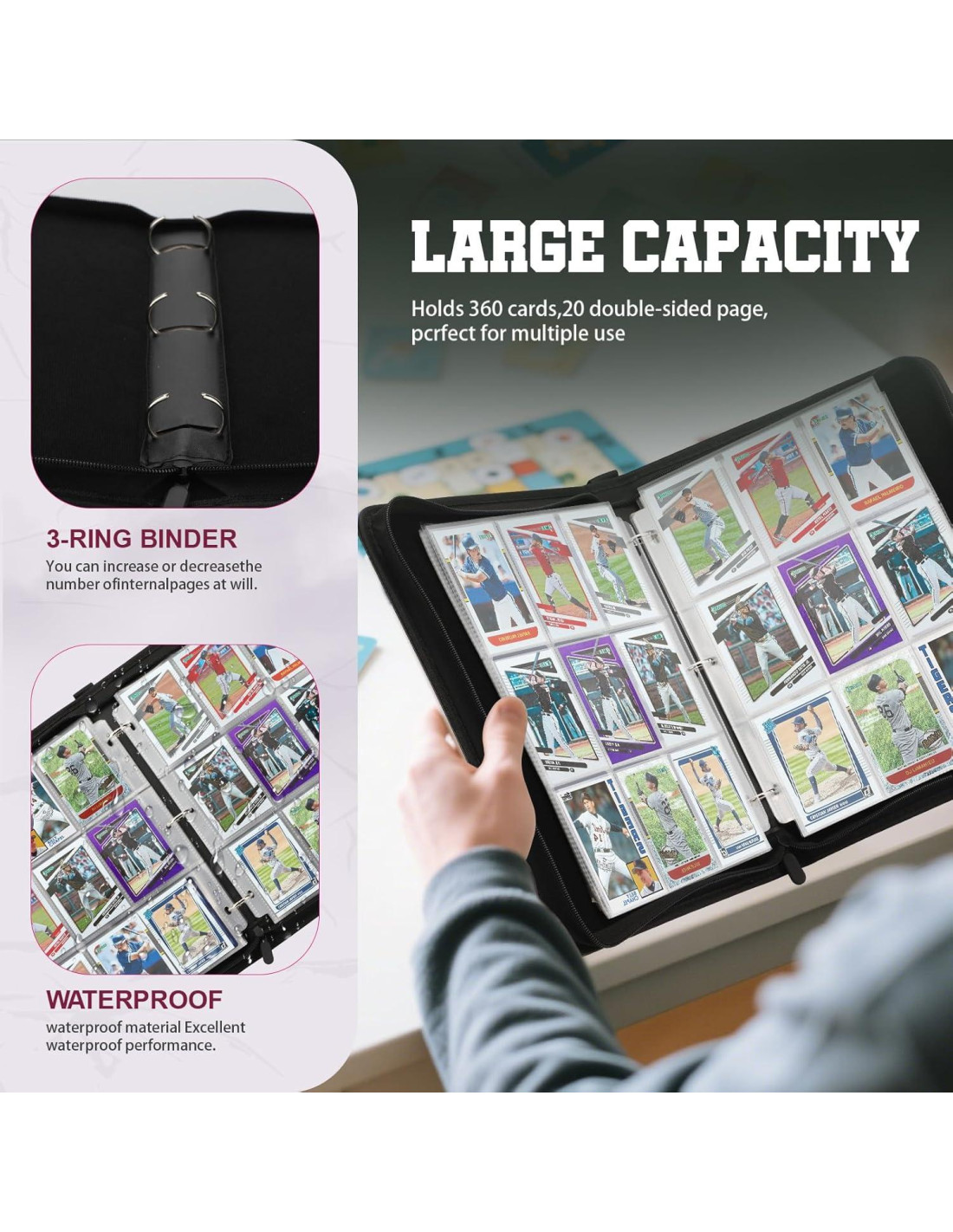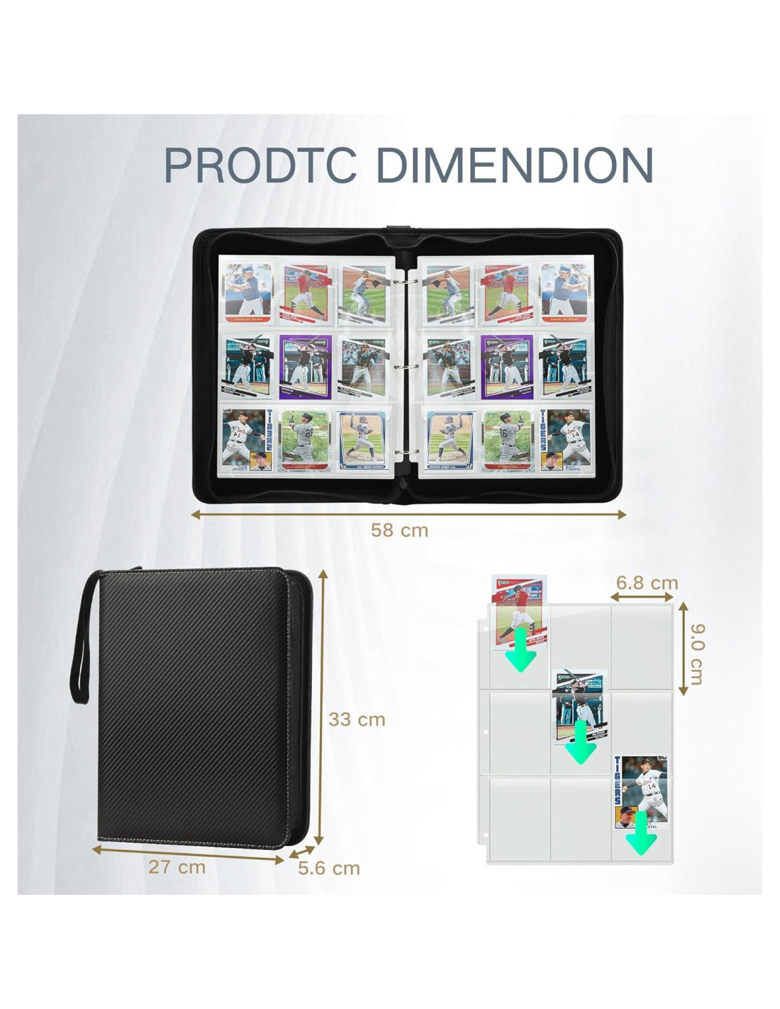 - [Carpeta de 3 Anillos con 40 Hojas] 9 bolsillos por página, las cartas se pueden almacenar por ambos lados, la Carpeta de Cartas con Cremallera viene con 3 anillos. Carpeta de cartas de 9 bolsillos con 40 fundas removibles. Puede contener hasta 720 cartas, proporcionando suficiente espacio para organizar todas tus cartas.
