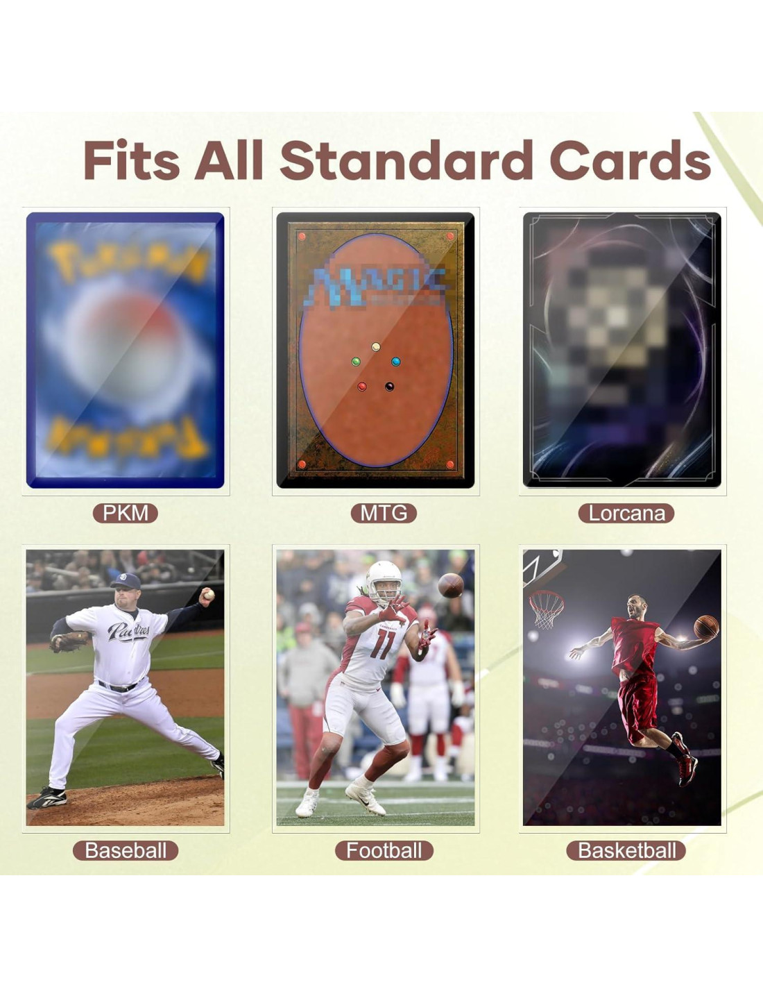 - Amplia Compatibilidad Nuestras fundas protectoras para cartas están diseñadas con un tamaño estándar de 66x91mm, perfectamente adecuadas para MTG, TCG, Cartas de Béisbol, Cartas de Fútbol, Cartas Deportivas y Cartas de Juego.