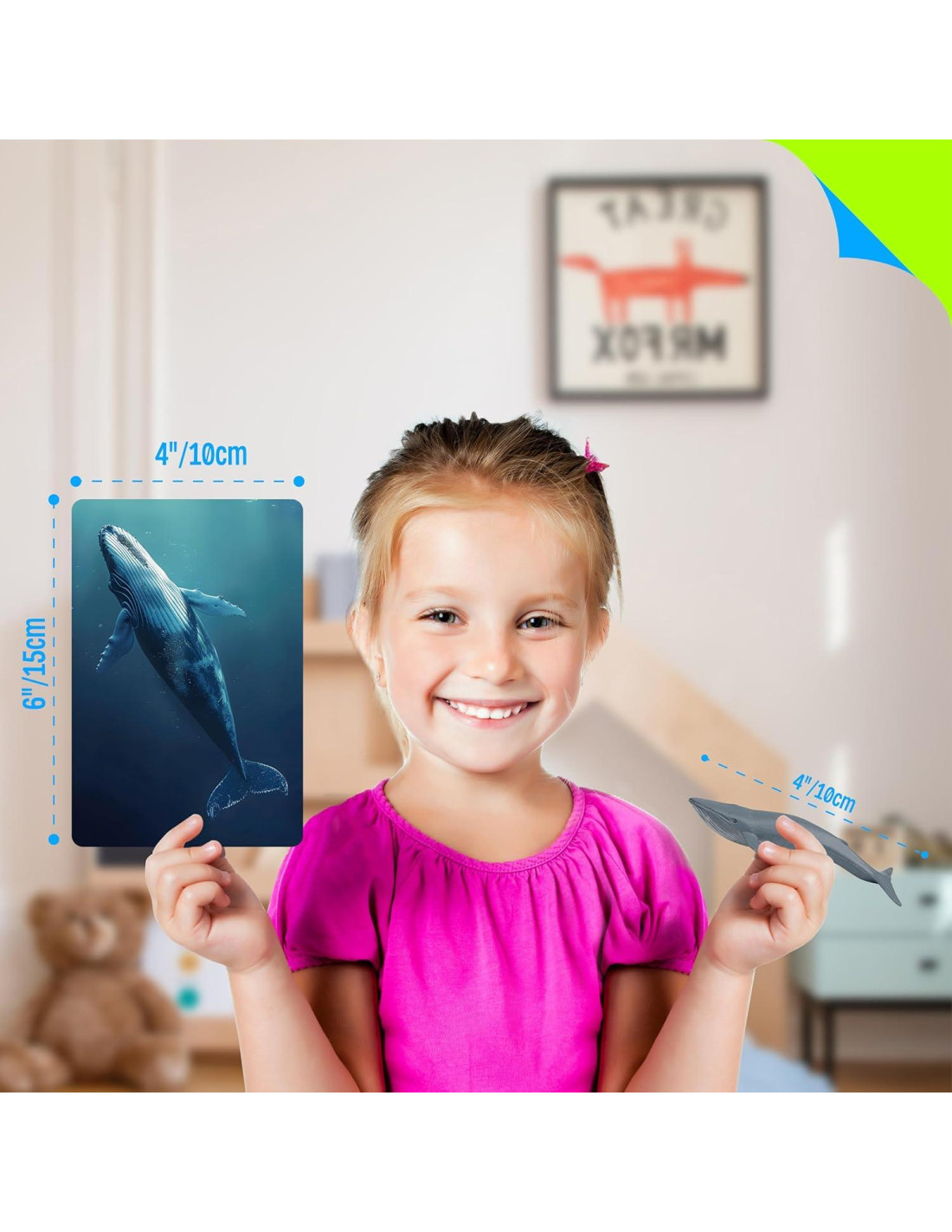 - 24 Tarjetas de Emparejamiento Doble Cara: Acompañando a las figuras de animales hay 24 tarjetas de introducción de doble cara, un lado es una imagen vívida del animal y el otro lado es información esencial sobre el animal relevante. Desde sus nombres y hábitats hasta datos interesantes, estas tarjetas promueven el aprendizaje temprano. Cada tarjeta mide 6 pulgadas (15,24 cm) x 4 pulgadas (10,16 cm).