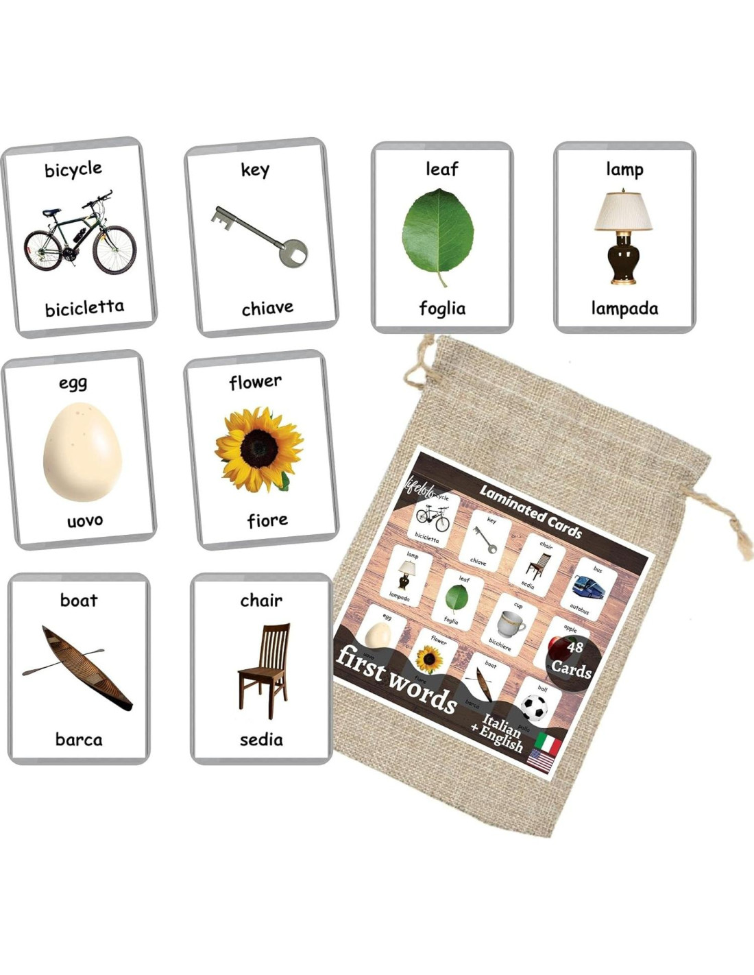 - Incluye 48 tarjetas de flash laminadas gruesas sobre las primeras palabras del bebé. Resistente al agua y a desgarros.