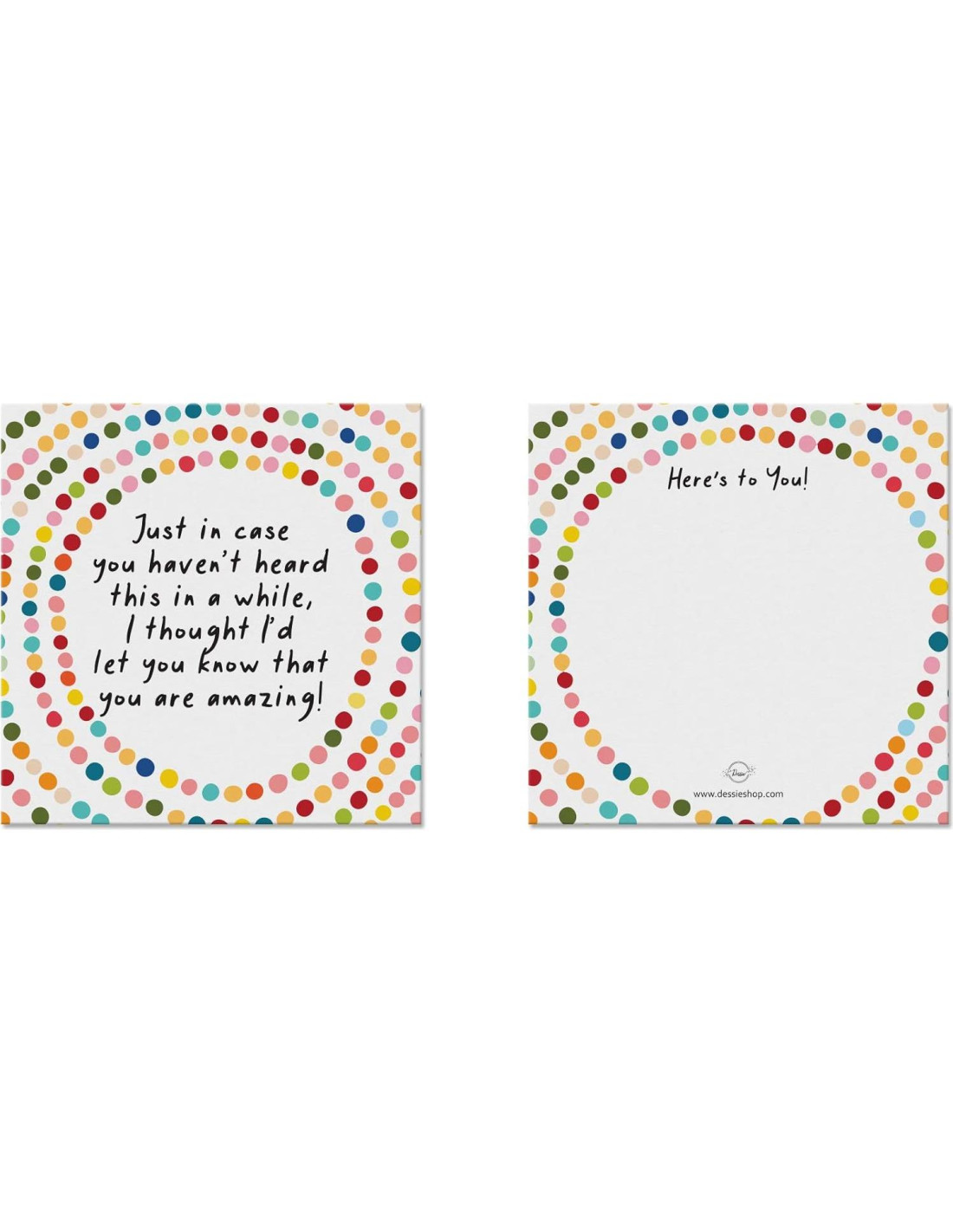 60 Tarjetas de Apreciación Inspiracionales: Ilumina el día de alguien con las 60 tarjetas inspiracionales de Dessie, perfectas para expresar gratitud y ánimo. Cada tarjeta incluye sobres y sellos "Eres Asombroso", todo en un conveniente tamaño de Nota Adhesiva para un fácil regalo! 60 Tarjetas de Gratitud para Cada Ocasión: Expresa apreciación sin esfuerzo con las 60 tarjetas de gratitud de Dessie! Compactas y convenientes, estas tarjetas del tamaño de una Nota Adhesiva vienen con sobres y sellos "Eres Asombroso" para elevar e inspirar. 60 Tarjetas Inspiracionales 100 Tarjetas de Cumpleaños Únicas 63 Tarjetas Inspiracionales 30 Tarjetas de Simpatía Únicas 110 Tarjetas para Todas las Ocasiones 100 Tarjetas en Blanco Únicas 100 Tarjetas de Agradecimiento Únicas