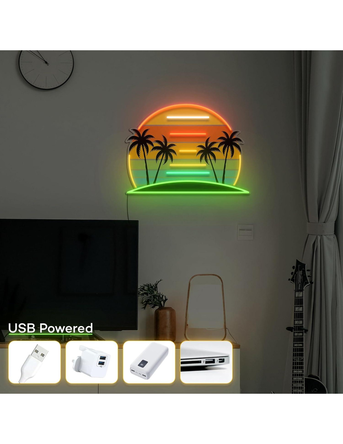 - [Tamaño]: Mide 9.2 pulgadas (23 cm) de alto y 12 pulgadas (30 cm) de ancho. Hecho con LED de alta calidad, tiras de silicona y acrílico para un impresionante efecto de atardecer en la playa.