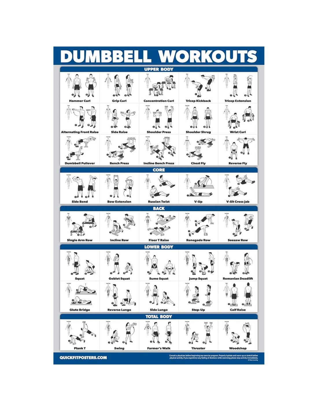QuickFit 3 Pack - Carteles de Ejercicios con Mancuernas + Ejercicios de Peso Corporal + Rutina de Estiramiento - Set de 3 Gráficos de Entrenamiento (Laminado, 45.72 cm x 60.96 cm)