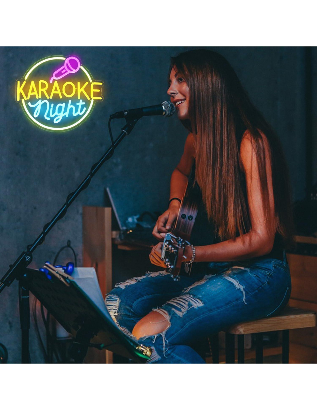 - Luz de Neón Segura: Las luces de neón de noche de karaoke están hechas de un nuevo tubo LED y una placa de acrílico transparente, pueden emitir luz brillante pero no deslumbrante. Nuestro cartel de lámpara de neón está cortado por láser y procesado a mano, ligero, confiable, sin ruido, seguro.