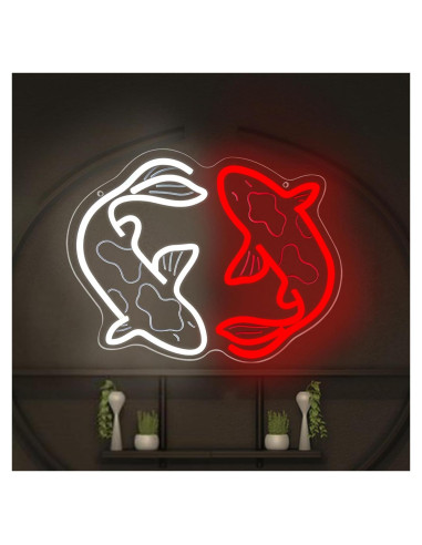- -Fácil de Instalar: La luz de neón de dos peces koi es fácil de instalar y fácil de colgar en la pared, creando una atmósfera mágica para tu dormitorio, estudio o negocio. Enciende el interruptor y podrás disfrutar del misterio de esta luz de neón