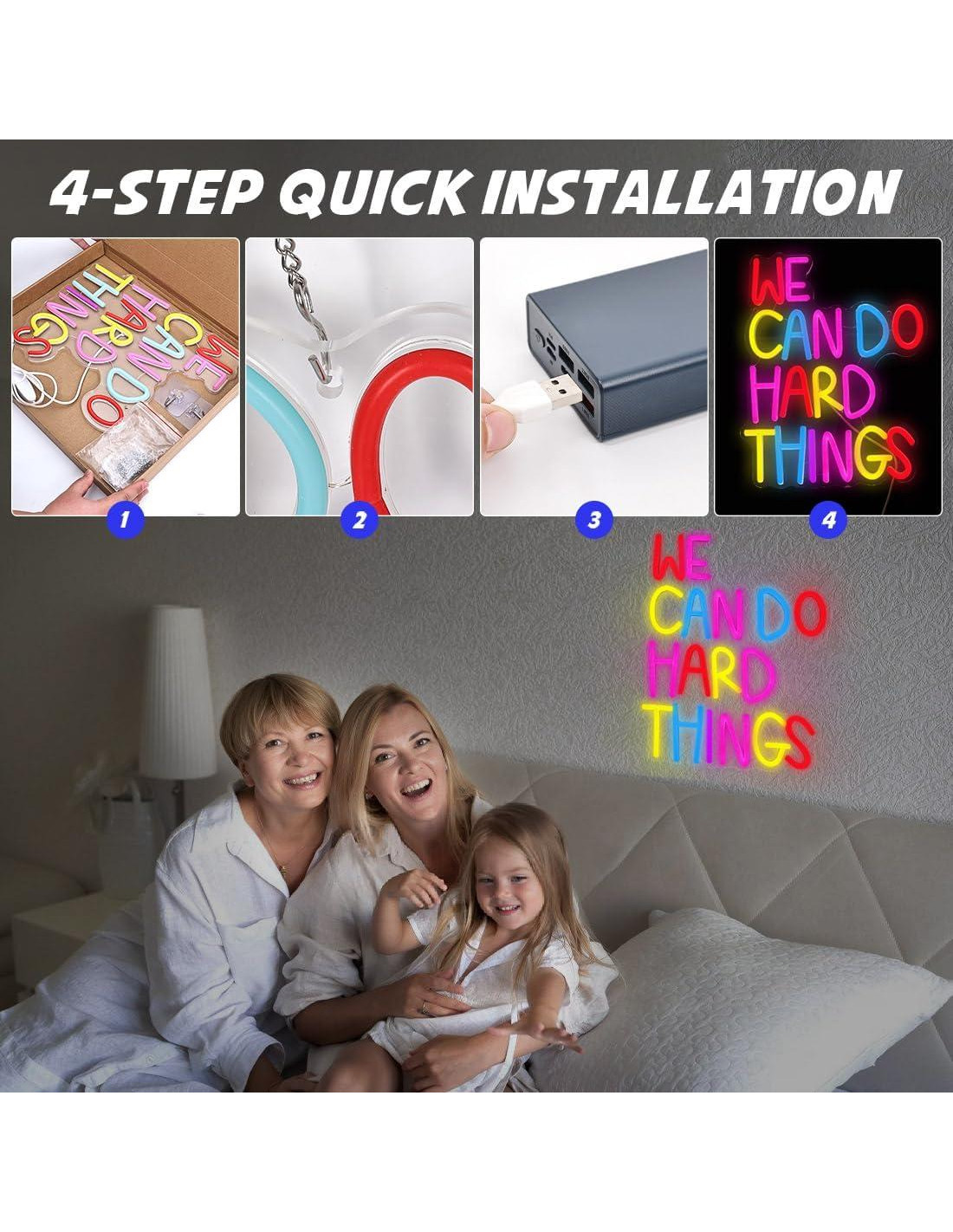 - [Decoración y regalo perfecto] Las luces de neón no solo son una decoración esencial para fiestas, sino también un regalo ideal para cumpleaños, día de San Valentín, Navidad y otras ocasiones de celebración. Enfrenta los desafíos con estas luces de neón que tienes lo que se necesita para abordar las 'cosas difíciles' de la vida.