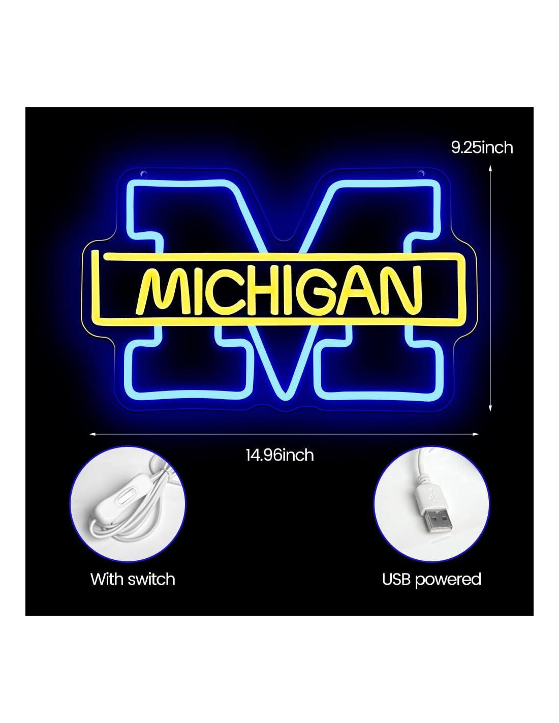 - Alta calidad y ecológico: las luces de neón del logo del equipo de Michigan están hechas de un respaldo de acrílico de alta calidad y tiras de luz de silicona. Tienen colores brillantes, larga vida útil y bajo consumo de energía, lo que las convierte en una opción de iluminación ecológica.