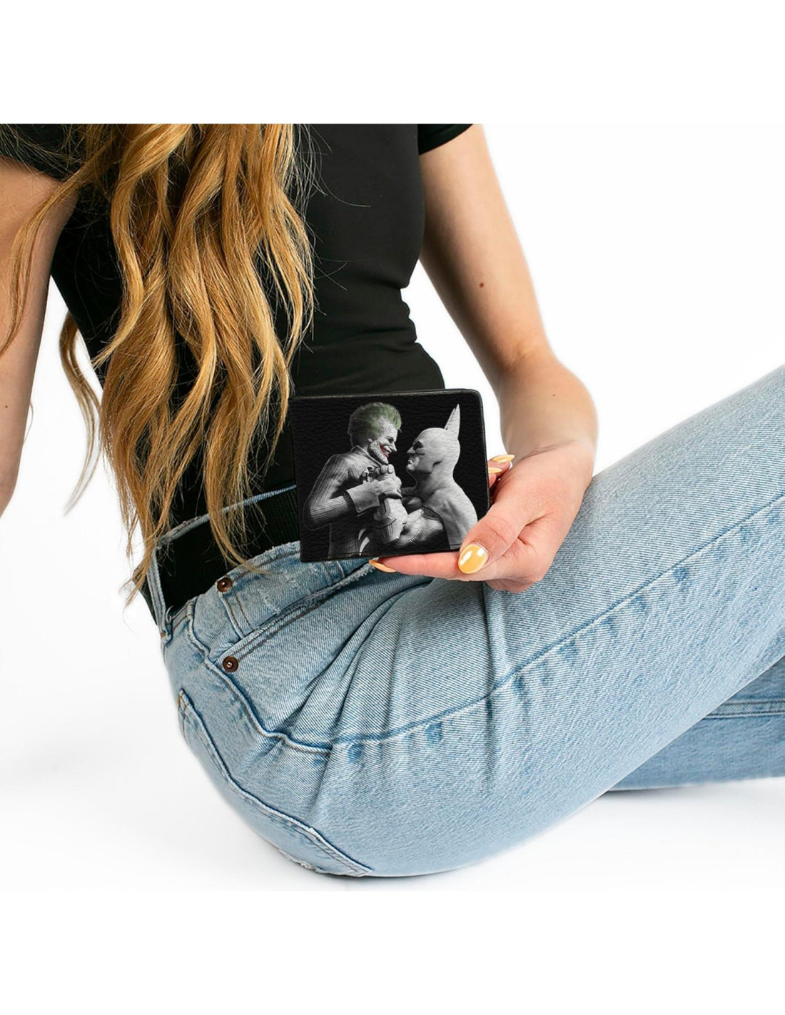 Esta increíble cartera bifold para hombre está hecha de cuero vegano premium. Mide 4.0x3.5x0.5 inches (10,16x8,89x1,27 cm) y cuenta con el compartimento para billetes estándar, 5 ranuras para tarjetas y un portador de identificación con ventana. Los logotipos se aplican utilizando tecnologías de impresión avanzadas, por lo que la cartera seguirá luciendo bien después de años de uso intenso. Este producto está oficialmente licenciado por dc Comics.