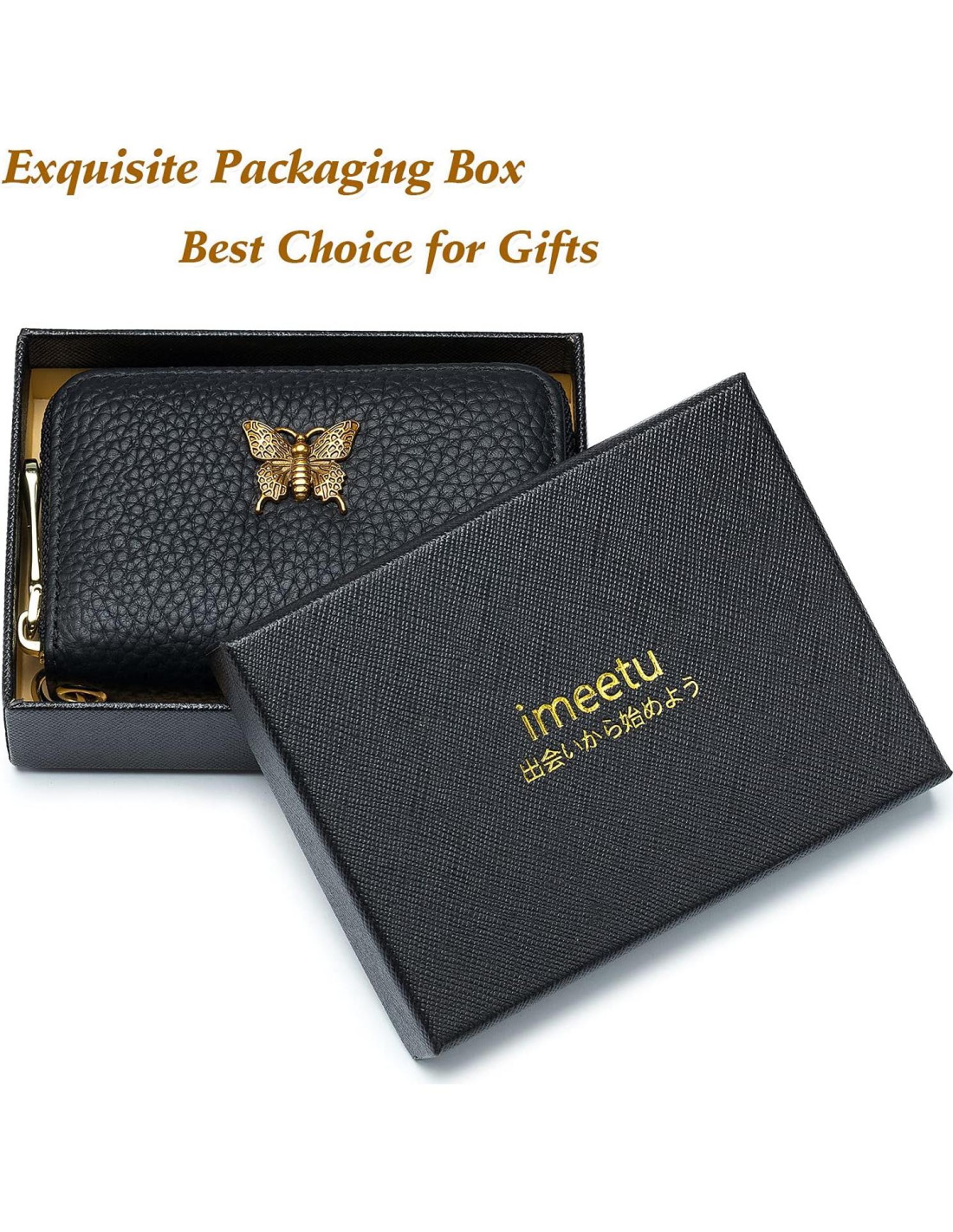 - Material de Cuero Premium: El titular de tarjetas de crédito está hecho de cuero genuino premium, super suave y brinda una sorprendente sensación al tacto. La linda decoración de mariposa debe ser una razón para que lo elijas, lo que te hace más atractiva y muestra tu moda.
