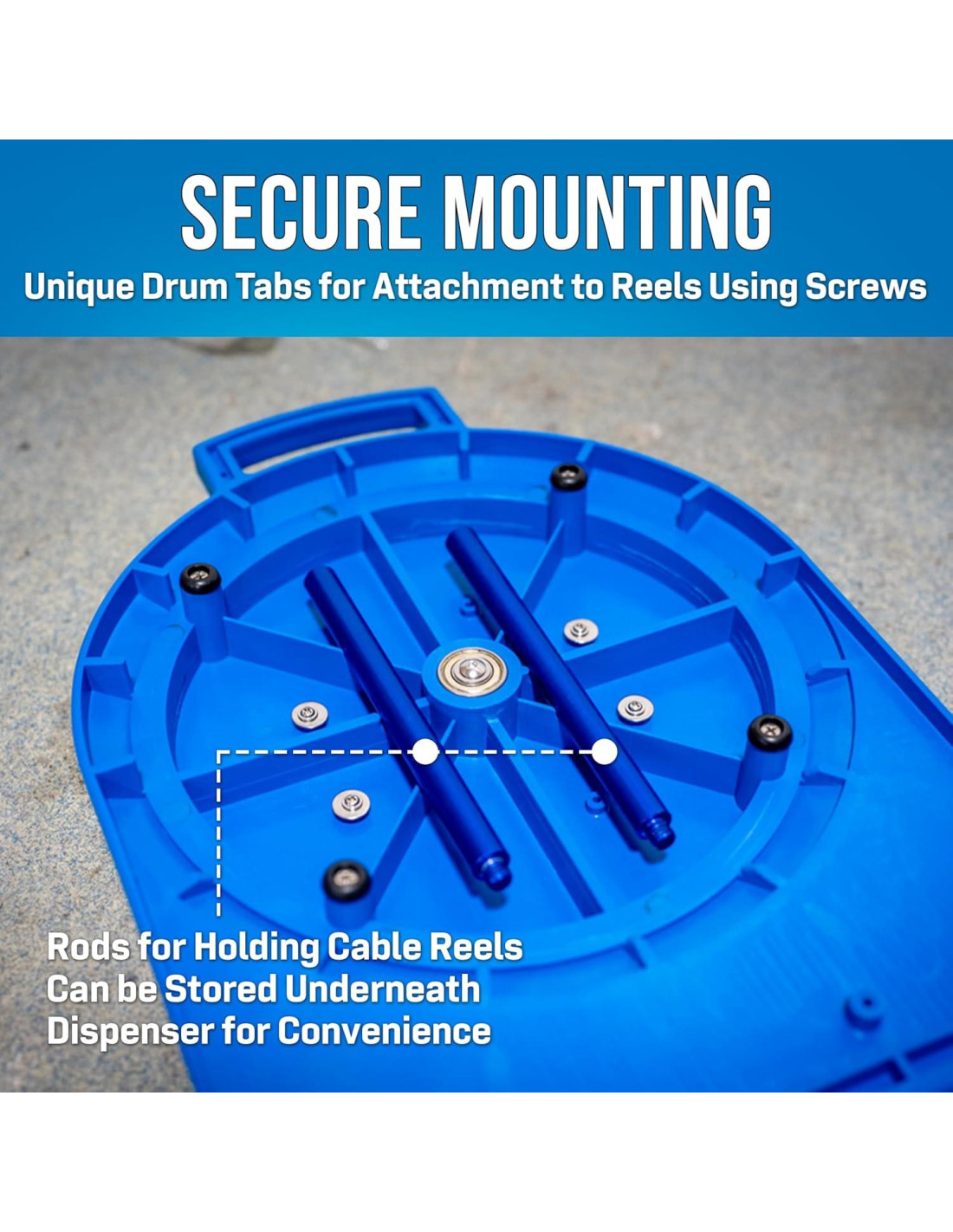 Diseñado para sostener carretes de cable y alambre de hasta 700 lb (318 kg), este dispensador de carrete de cable es perfecto para enrollar o desenrollar cables de carretes de cable de tamaño pequeño a mediano. Este dispensador de carrete de cable también cuenta con lo siguiente: Pestañas únicas del tambor de cable que permiten montarlo a un carrete de cable mediante tornillos. Diseño compacto y portátil que facilita su almacenamiento y movimiento en los sitios de trabajo. Las varillas centrales para sostener los carretes de cable se pueden almacenar debajo del dispensador, haciéndolo aún más compacto y portátil. Soporta cualquier carrete de cable de diámetro hasta 700 lb (318 kg), incluso si los carretes están rotos. Los pies de goma proporcionan un agarre antideslizante y seguro mientras se enrollan o desenrollan cables. Un gran borde alrededor del tambor evita que los cables se queden atrapados o enredados al tirar del cable.