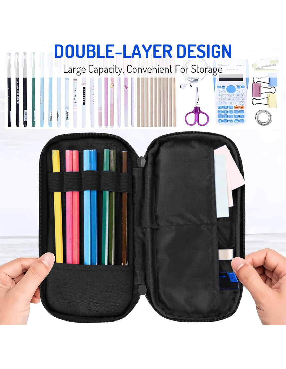 - Funcional y Almacenamiento para Esenciales de Escritura No solo es elegante, sino también altamente funcional, este estuche para niños en la escuela ofrece dos compartimentos para almacenar ordenadamente todos los esenciales de escritura como bolígrafos, lápices, borradores y más. La robusta cremallera asegura un cierre seguro para mantener todo en su lugar.