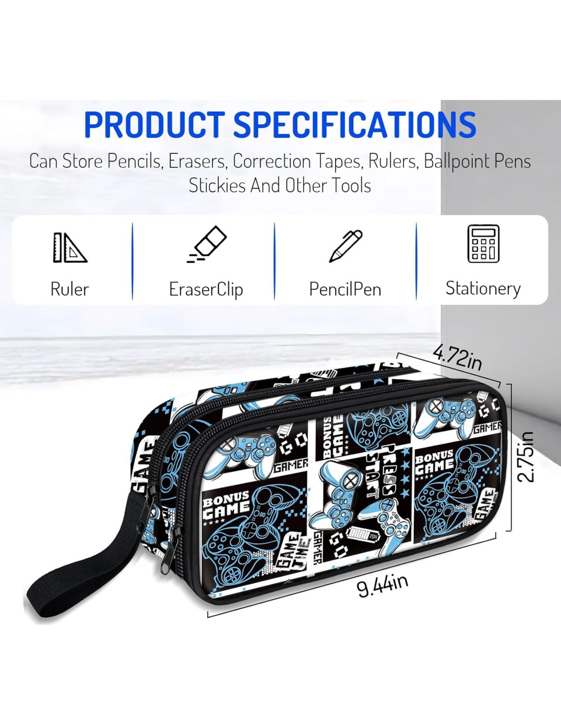 - Diseño de Juego de Moda Nuestro estuche para niños presenta un diseño de videojuego moderno que añade un toque de aventura y estilo. El llamativo patrón de juego y la estética elegante hacen de este estuche grande para niños un accesorio destacado.