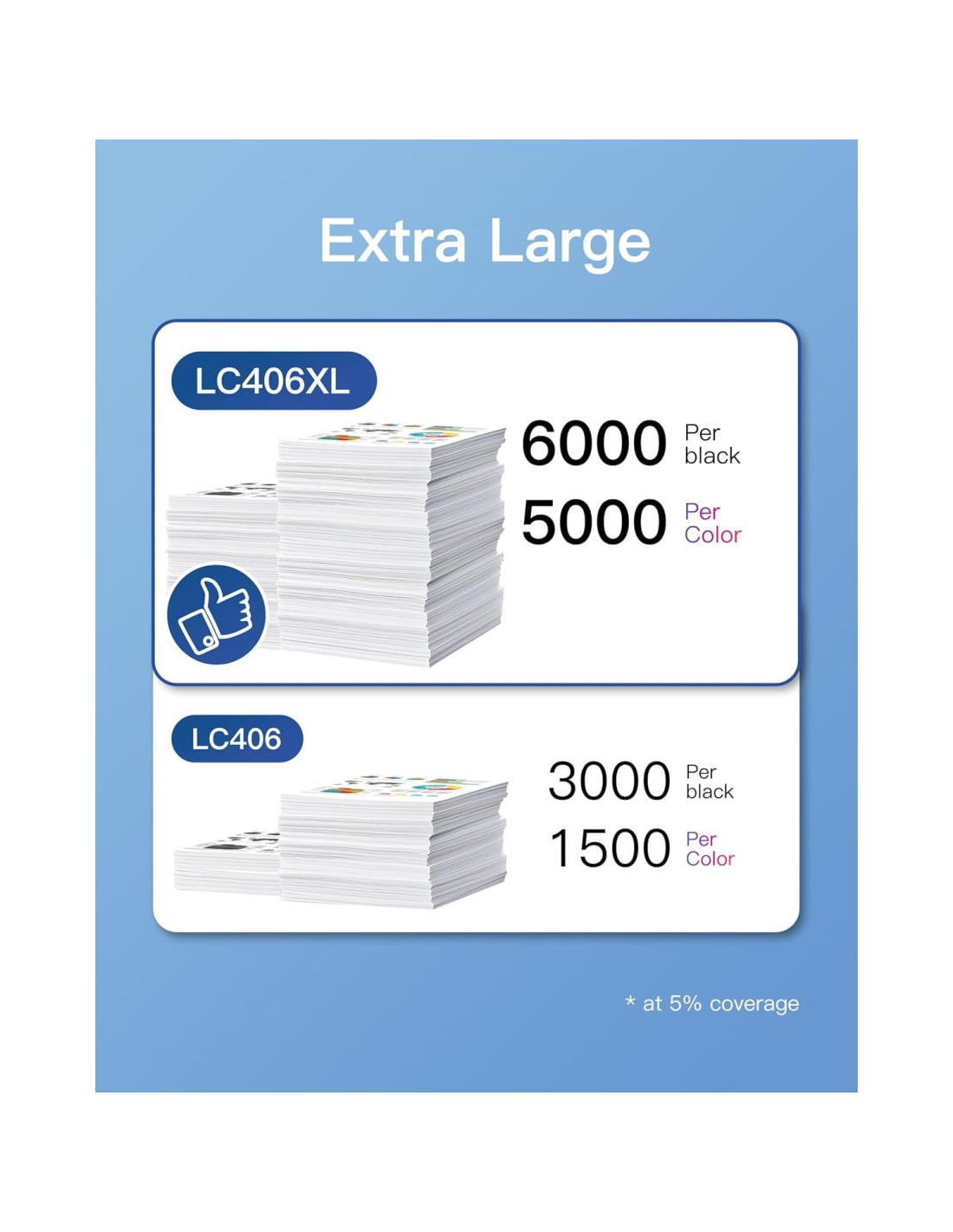 - 1. [Capacidad Extra Grande] Hasta 6,000 páginas por cartucho de tinta negra LC406XL LC 406XL (LC406XLBK) y 5,000 páginas para cartucho de tinta de color LC406XL LC 406 XL (LC406XLC LC406XLM LC406XLY) (Carta/A4, al 5% de cobertura)