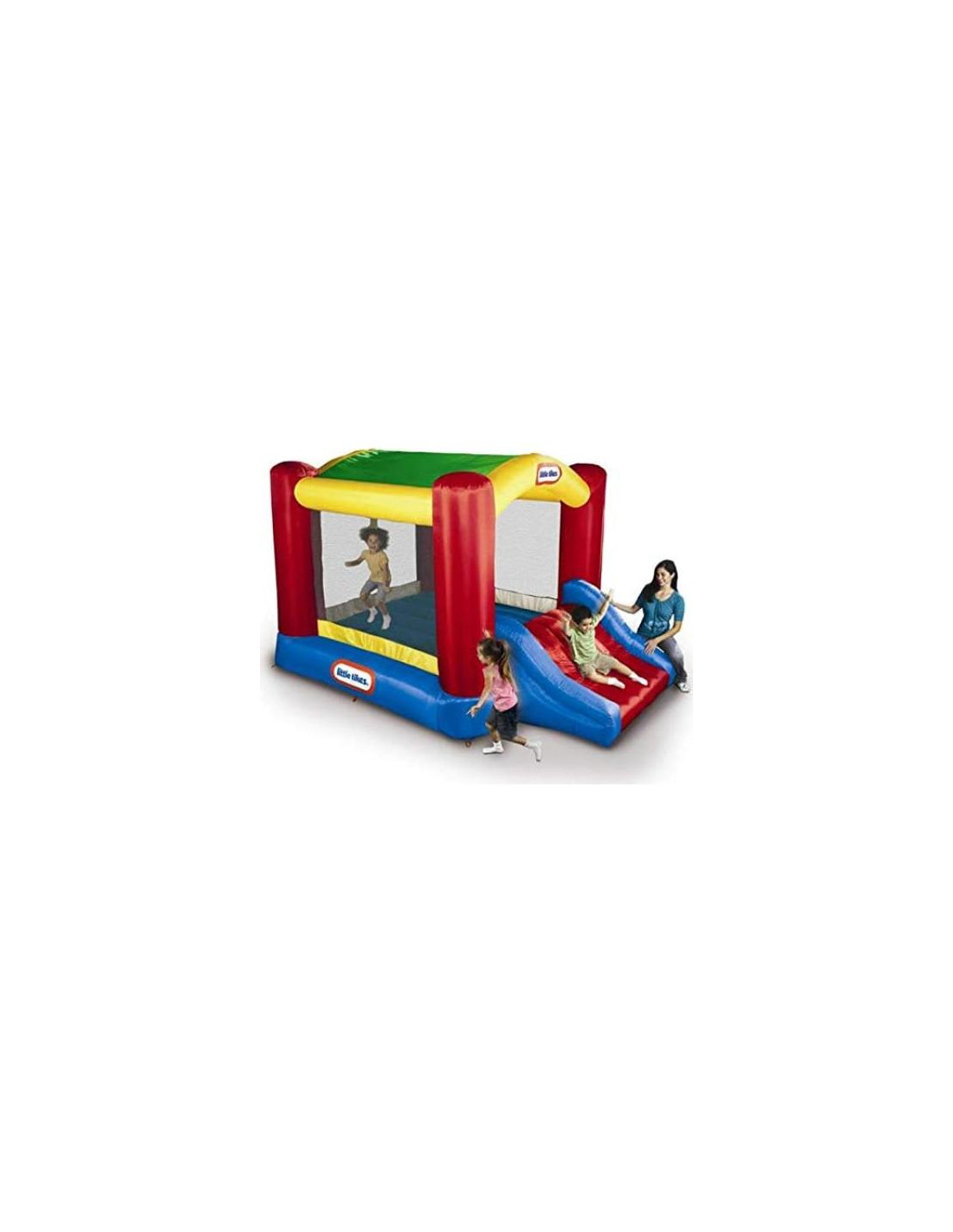 El inflable Little Tikes Shady Jump 'n Slide es un inflable para el patio trasero con un dosel de sombra arqueado para diversión rebotante al sol. Este inflable cuenta con un tobogán y una gran área de rebote cubierta por un dosel protector. Los niños pueden jugar juntos y hacer ejercicio en esta casa de rebote atemporal. Los lados de malla ayudan a mantener a los niños en la superficie de rebote. Características: - El dosel arqueado proporciona sombra constante - Dos puertas de malla (en la parte trasera) para fácil entrada a la unidad - Bolsillos laterales de malla para almacenamiento de zapatos y otros artículos - Después de la inflación, el soplador debe funcionar continuamente mientras los niños juegan - El inflable debe estar anclado firmemente en su lugar - Superficie de salto de 7 pies (2,13 m) de ancho - Número máximo de niños: 3 - Límite de peso combinado máximo: 250 lbs (113,40 kg) - Tamaño del producto: 144.00''L x 108.00''W x 72.00''H (365,76 cm x 274,32 cm x 182,88 cm) - Los accesorios incluyen: * 1 soplador de alta resistencia con enchufe GFCI * 1 kit de reparación * 1 bolsa de almacenamiento * 4 estacas para el soplador * 6 estacas para el inflable - Garantía limitada de 90 días a partir de la fecha de compra en el tejido inflable de poliéster - Garantía limitada de 1 año a partir de la fecha de compra en el soplador - Consulte el folleto de instrucciones para la configuración, almacenamiento, mantenimiento y cuidado - Diseñado solo para uso exterior en el hogar.