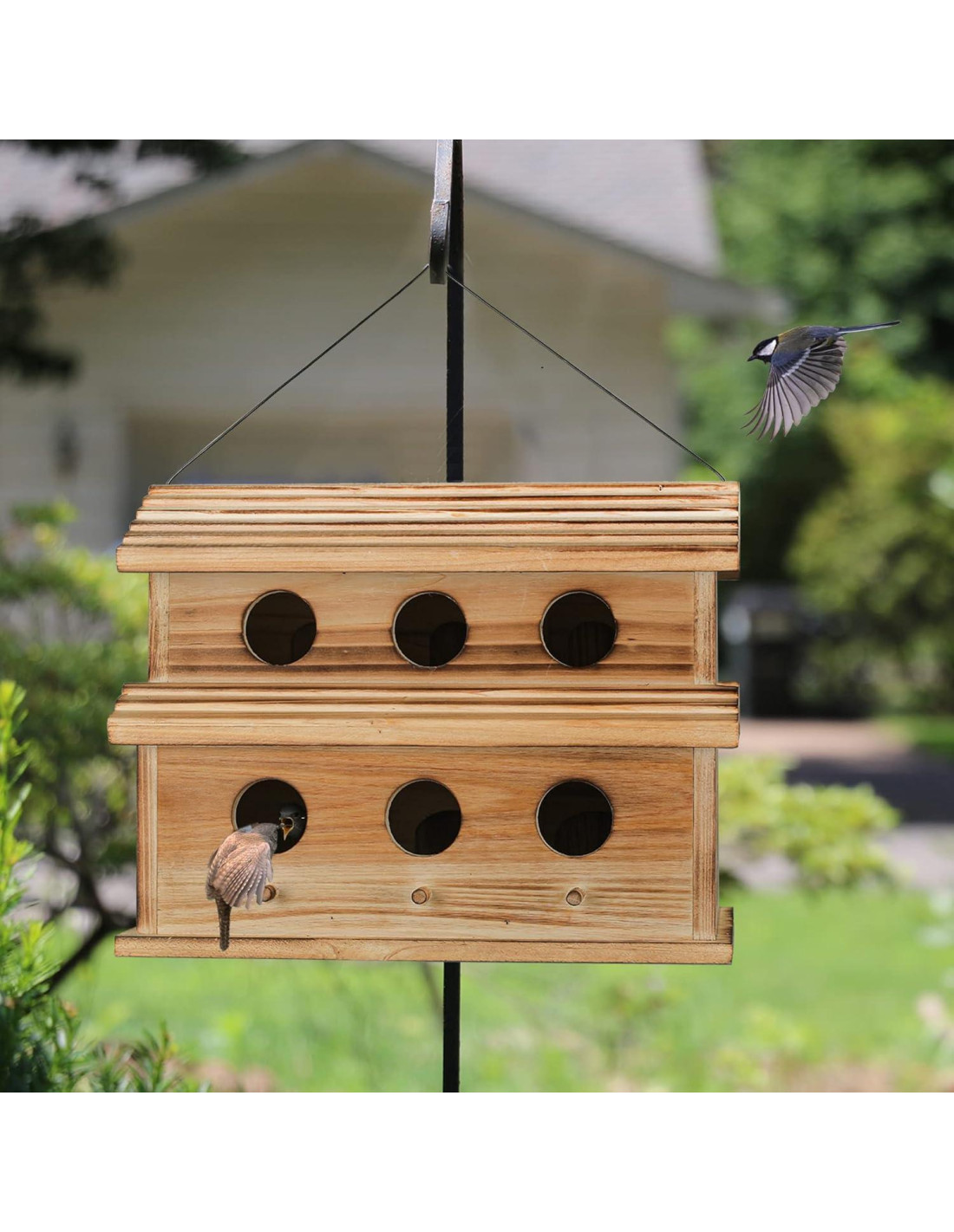 - Casa para Aves de Seis Habitaciones: Espacio para 6 familias de aves, perfecta para azulejos, jilgueros y cardinales.