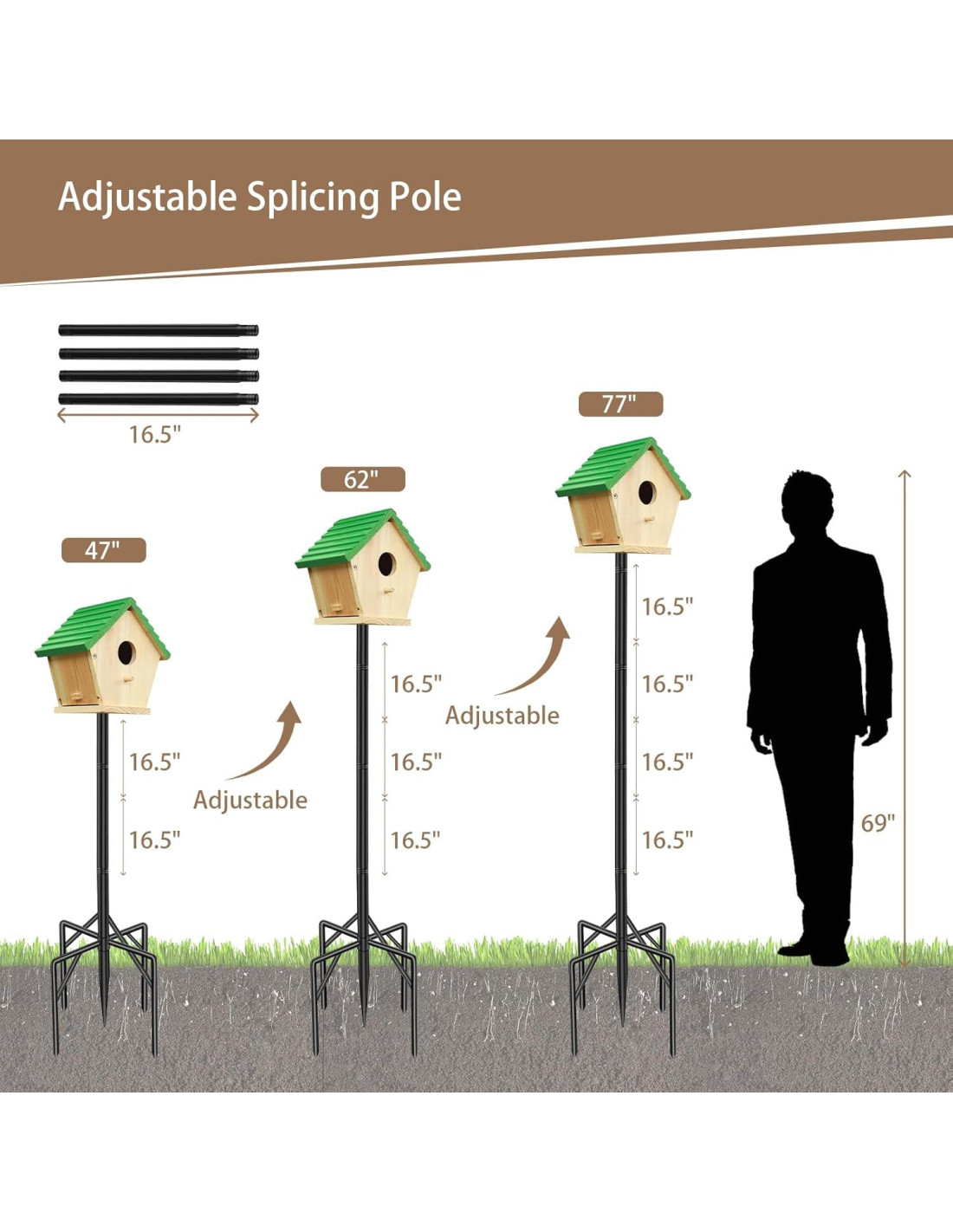 - Altura Ajustable: Puedes ajustar libremente la altura de la estación de alimentación de aves a 77 pulgadas (195,58 cm), 62 pulgadas (157,48 cm) o 47 pulgadas (119,38 cm) según tus preferencias o las aves específicas que esperas atraer.