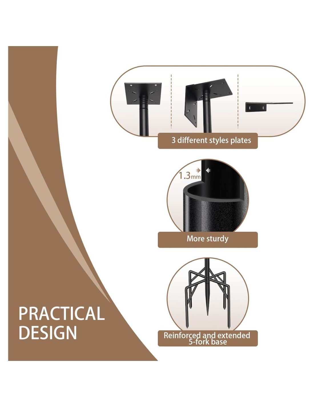 - Diseño Práctico: La base de cinco patas está reforzada para asegurar que el poste sea más estable en el suelo. Las cuatro patas están hechas de varillas de hierro sólido en lugar de tubos de hierro huecos, lo que lo hace más fuerte y duradero que los postes de casa de aves tradicionales.