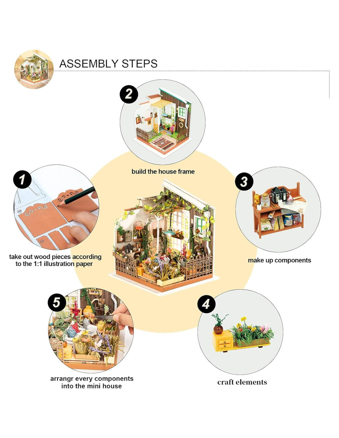 Rolife Jardín de Miller DG108 es un encantador kit de casa de muñecas en miniatura de pequeño jardín.