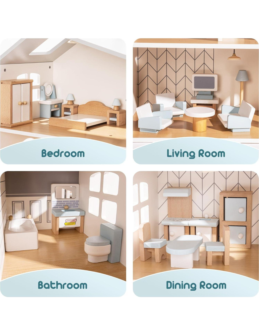 - Juego de Muebles de Casa de Muñecas de Madera Sólida: Completo con un refrigerador, sillas, cama, televisión y más, este juego libre de plástico eleva instantáneamente cualquier casa de muñecas en miniatura.