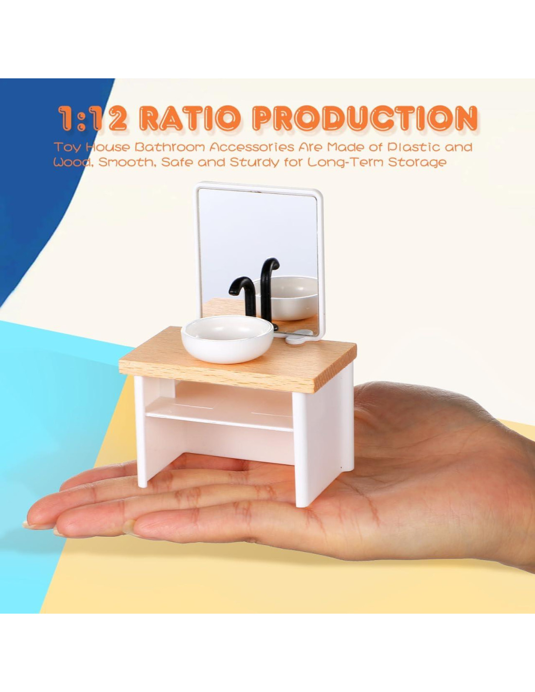 - Muebles en miniatura-- muebles de baño de tamaño pequeño multiusos, no solo una decoración para casa de muñecas, sino también una herramienta para que los niños desarrollen habilidades motoras finas