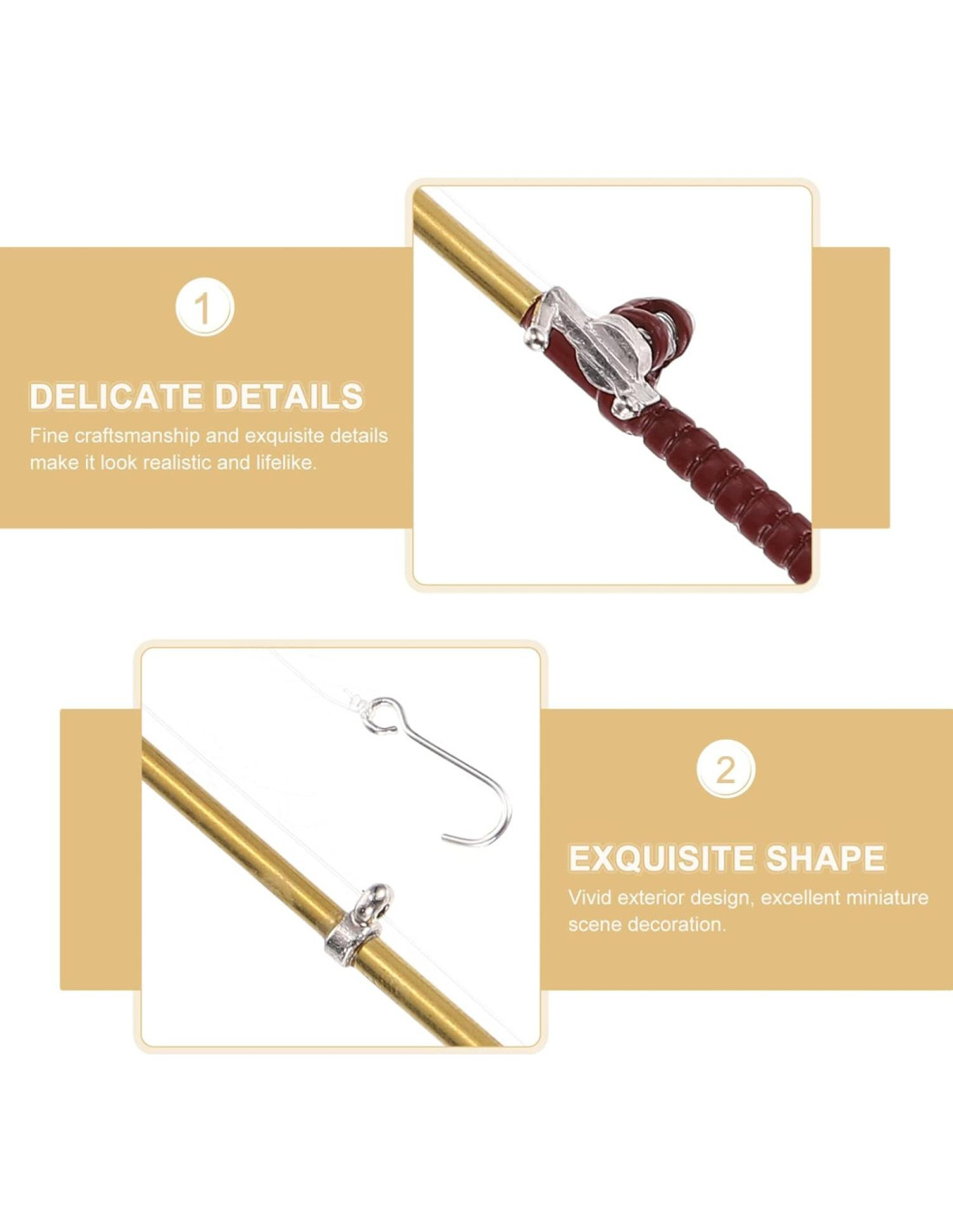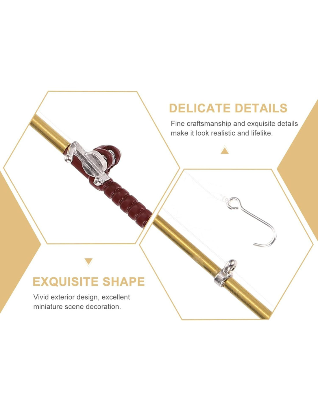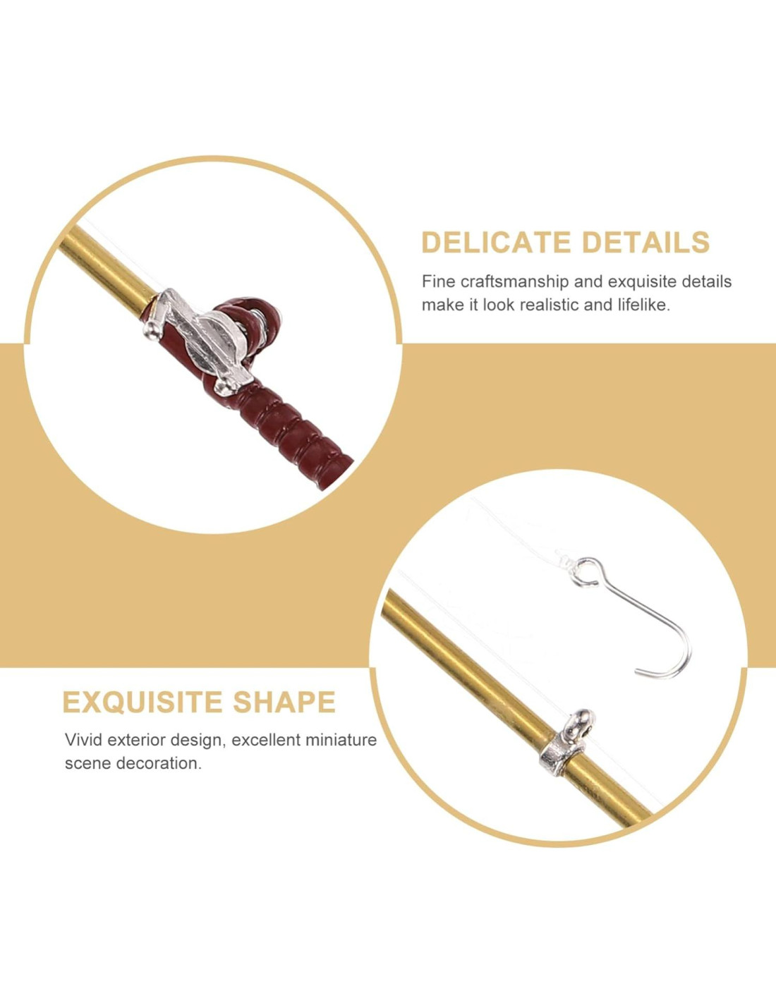 - Este modelo de caña de pescar mini está hecho a proporciones exactas y es perfecto para escenas de casas de muñecas. Su diseño meticuloso muestra todas las características de una caña de pescar real, añadiendo más realismo y diversión a la escena en miniatura.