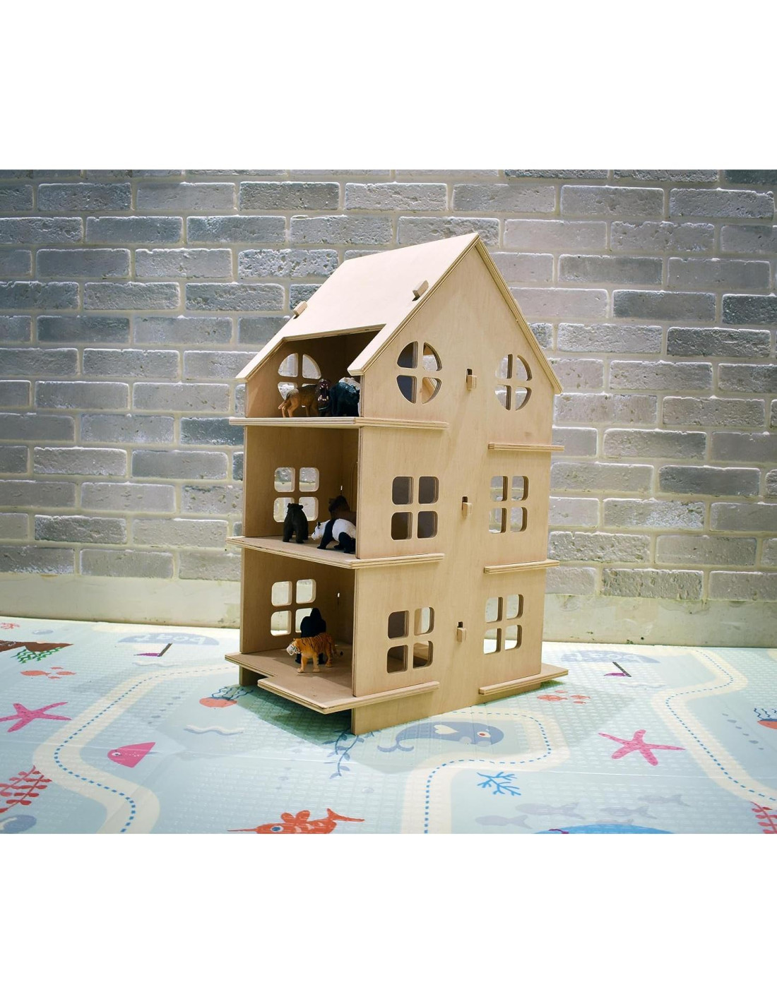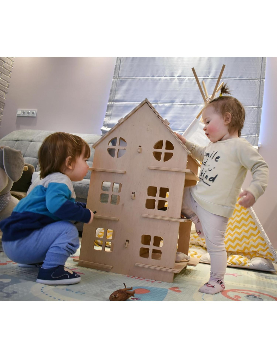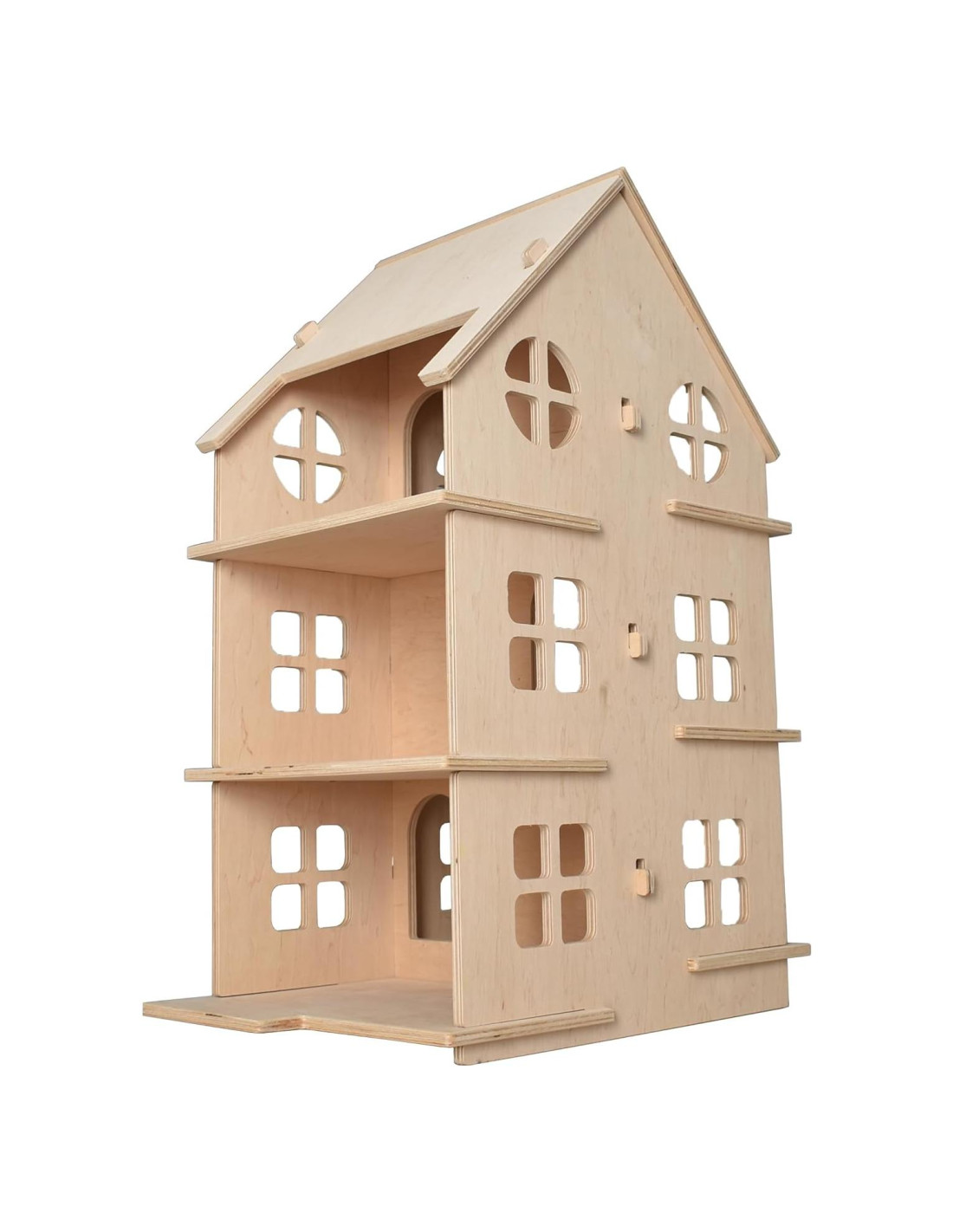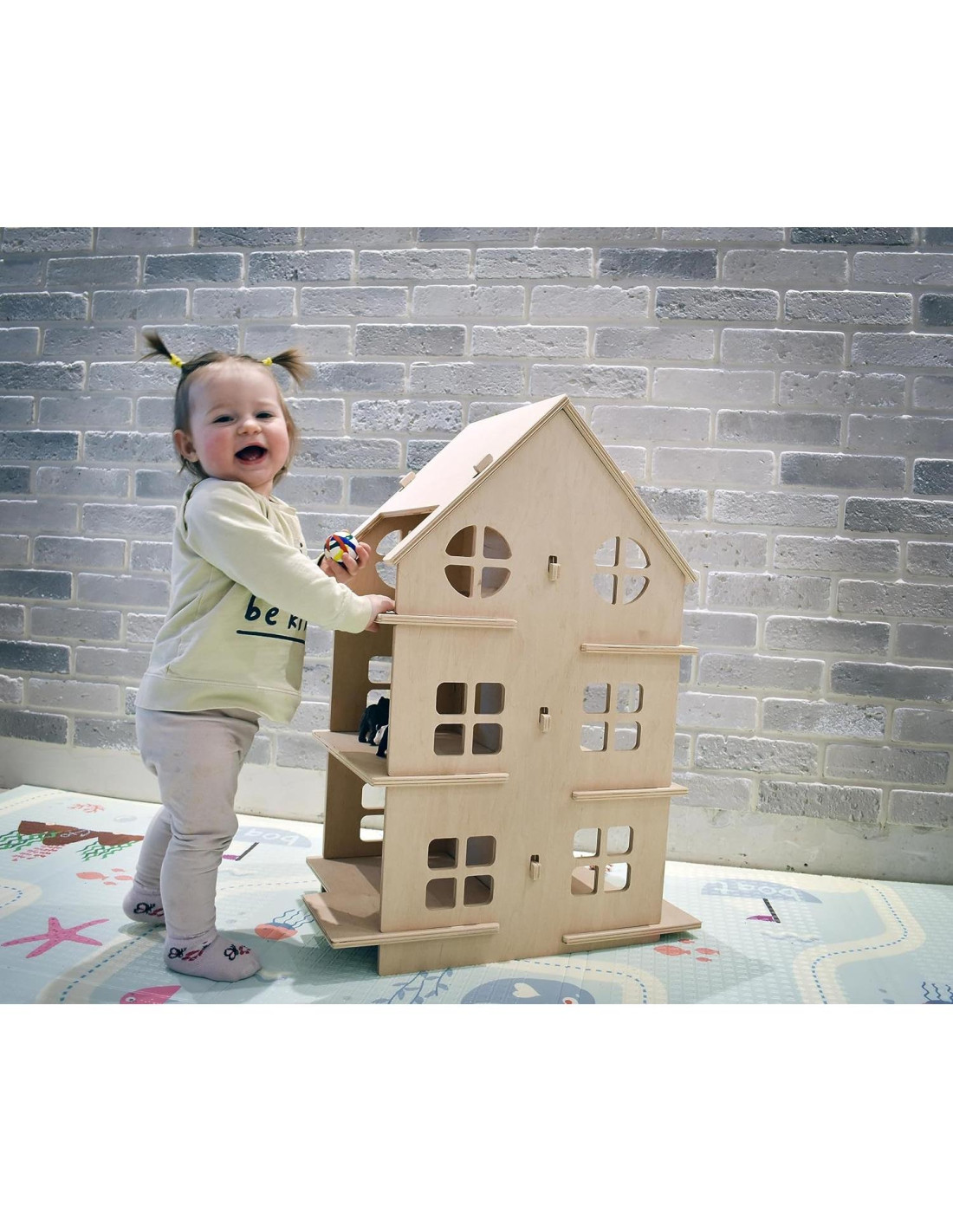 ¿Buscas una casa de muñecas de gran tamaño para un regalo de niña? Casa de Muñecas Montessori - ¡es una gran idea para un regalo útil para un niño pequeño! Esta casa de muñecas de madera se pliega fácilmente a mano. Tiene mucho espacio libre para cada habitación y está diseñada para muñecas de cualquier tamaño. La gran ventaja de una casa de juegos como esta es que puedes llevarla fácilmente en un viaje. La casa de muñecas desarrolla habilidades motoras finas, imaginación y fantasía del niño. Está diseñada en un estilo minimalista y se adaptará a cualquier interior de habitación. El tamaño de la casa es grande cuando está ensamblada y se pueden colocar muchos muebles y muñecas en la casa. La casa de muñecas tiene 3 pisos y 6 habitaciones. DIMENSIONES: Ancho - 15,7 (40 cm) Longitud - 11,8 (30 cm) Altura - 23,6 (60 cm) Hicimos la casa de muñecas práctica, confiable y muy interesante para jugar. ¡Será un regalo maravilloso para tu hijo!
