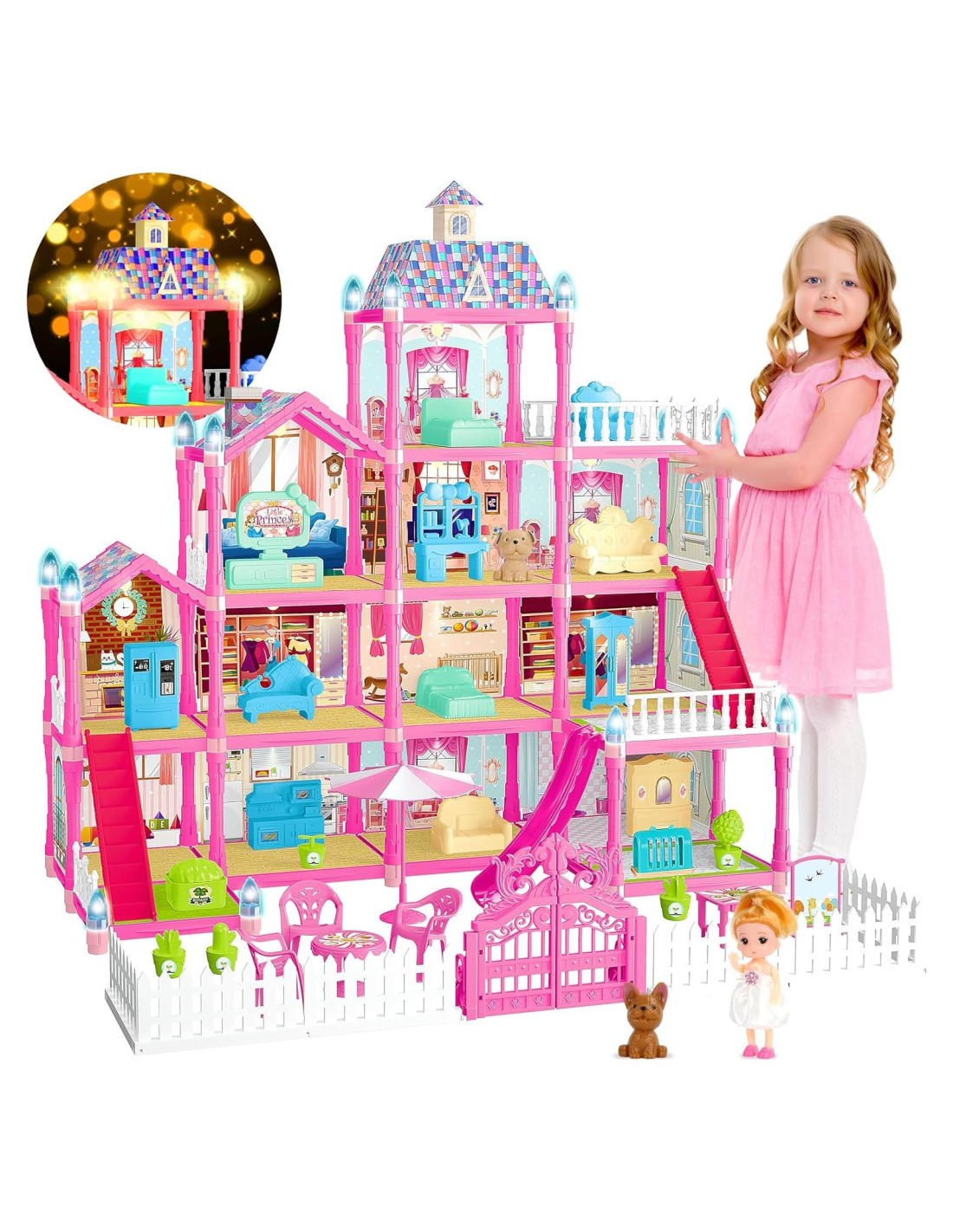 - [Bonito Juego de Casa de Muñecas] La casa de muñecas mide aproximadamente 60.96 x 49.53 x 66.04 cm y comprende 4 pisos y 13 habitaciones, incluyendo sala de estar, cocina, dormitorio, baño, etc. También viene con un juguete de muñeca y dos cachorros. Tus hijos se divertirán mucho jugando con esta casa de muñecas