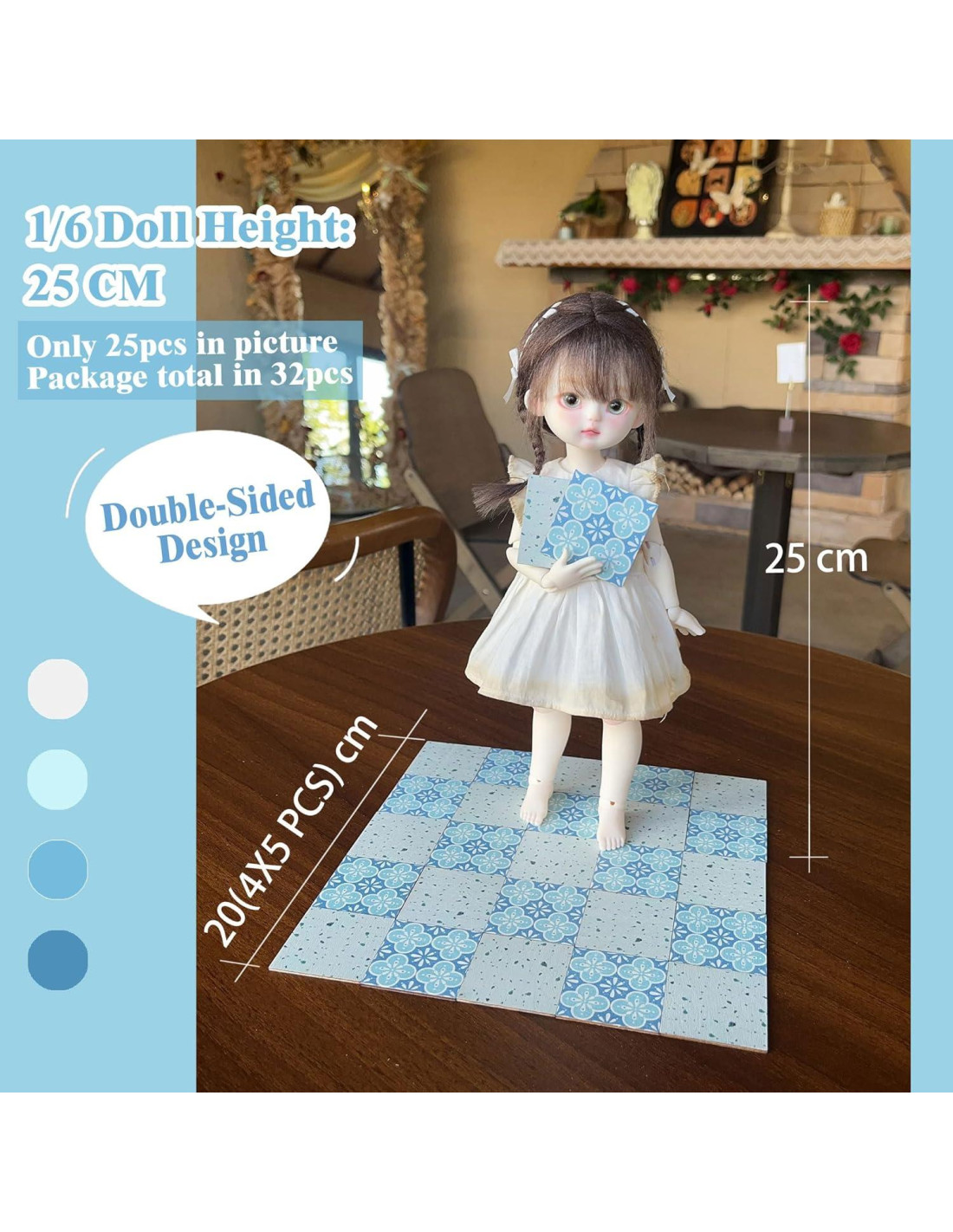 - - DECORACIÓN EXQUISITA PARA CASA DE MUÑECAS - ¿Buscas un suelo en miniatura realista y estéticamente agradable para tu casa de muñecas? No busques más, la serie de azulejos de suelo para casa de muñecas de doble cara es la solución. Cada set incluye 32 piezas, con una variedad de diseños que representan escenas de diferentes áreas, estilos y ocasiones de casas de muñecas.