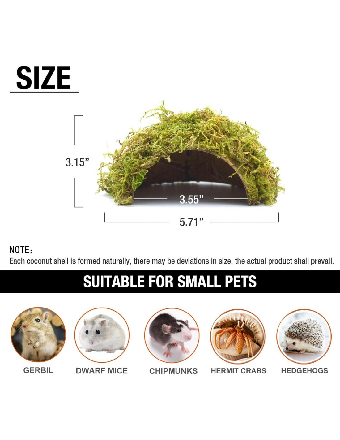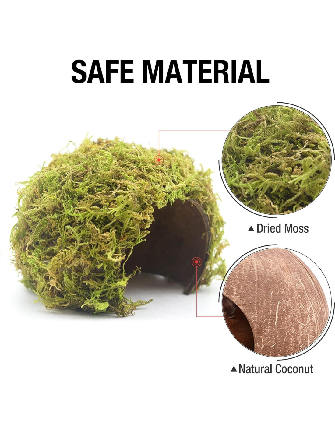 - [Materiales Seguros y Comestibles]: Fabricado con conchas de coco de alta calidad seleccionadas a mano y musgo natural cosechado de montañas, este escondite utiliza un adhesivo tradicional y comestible para uniones seguras, diseñado para ser seguro para mascotas pequeñas como hámsters para morder y explorar. Ideal para crear un lugar de escondite natural y no tóxico.