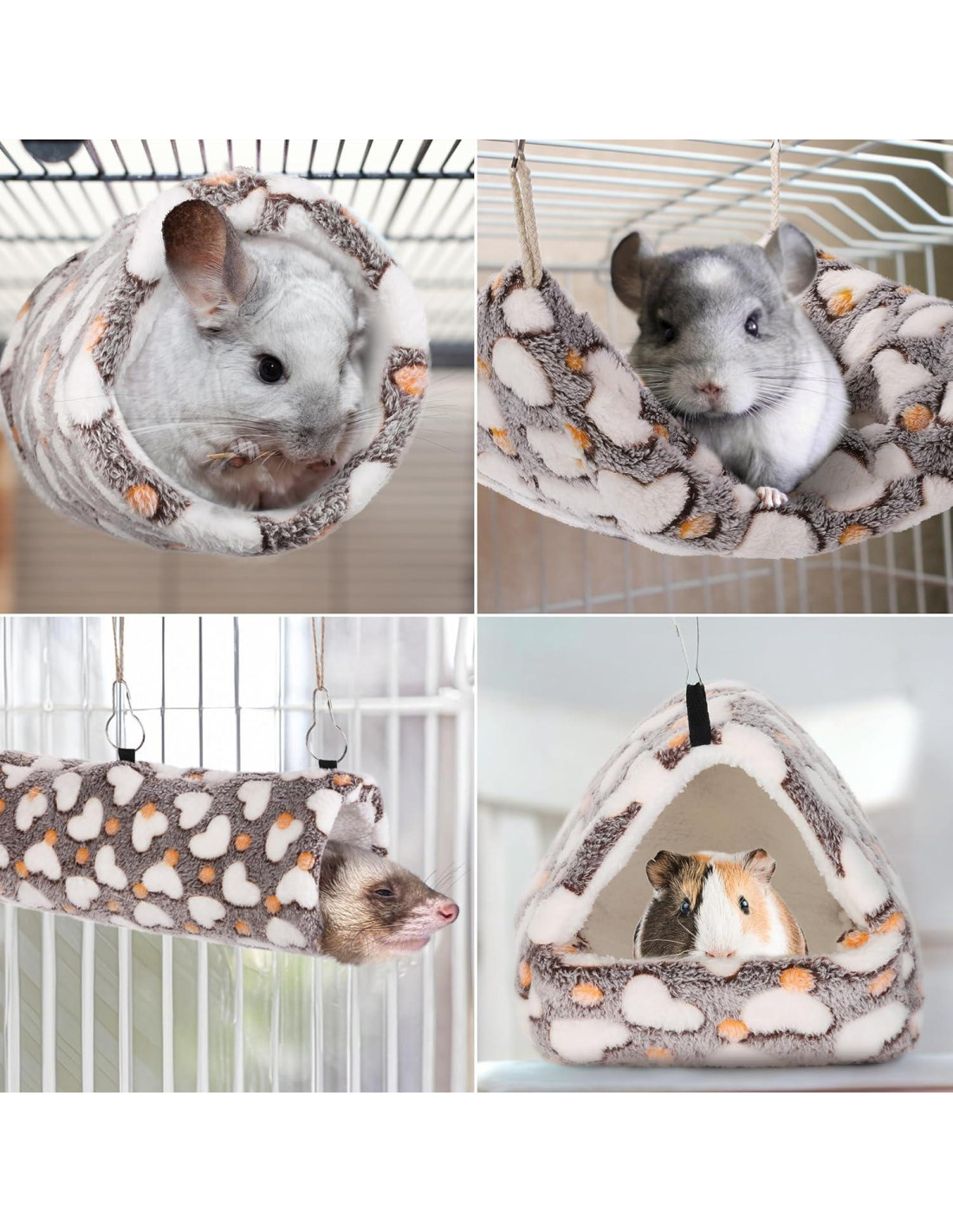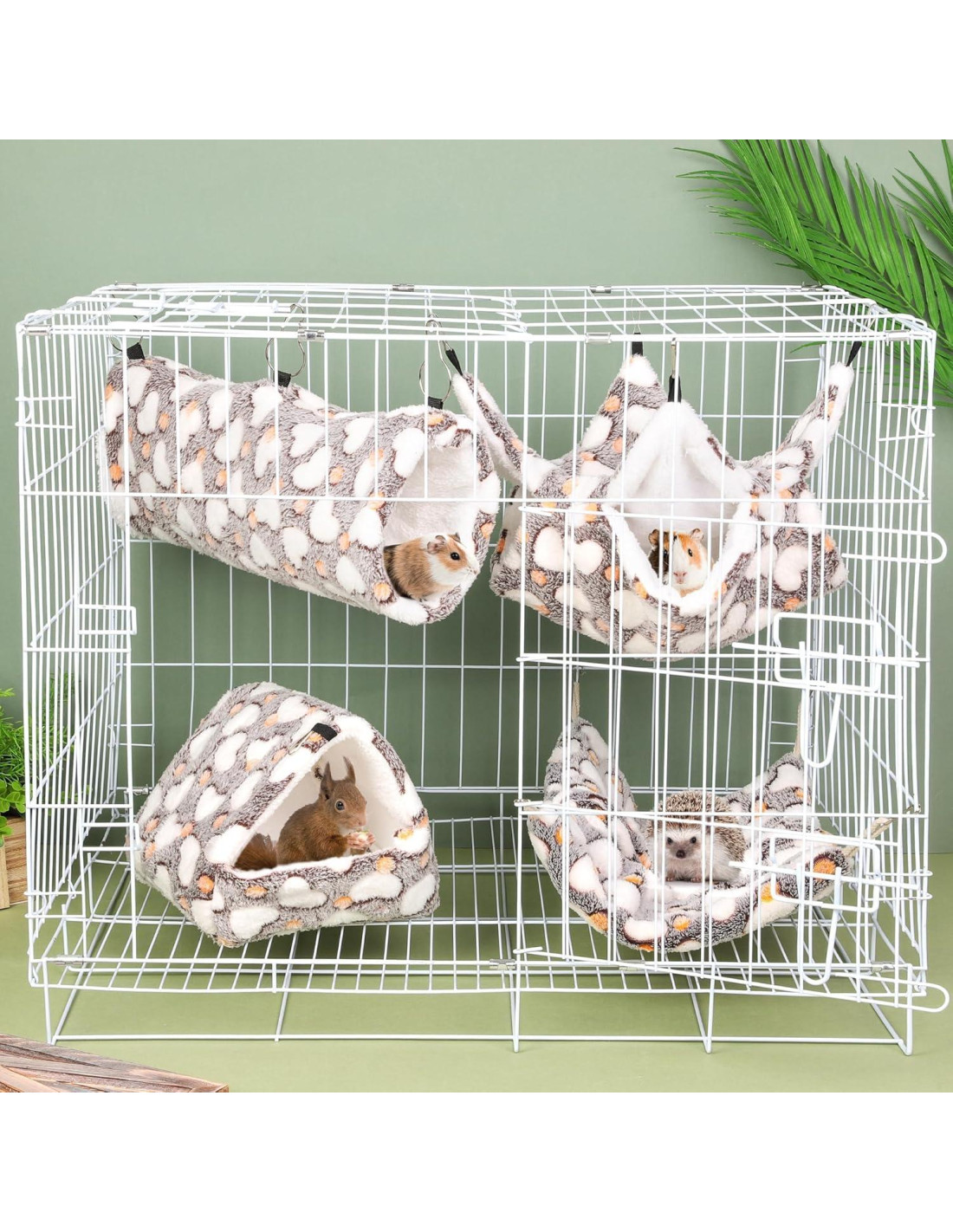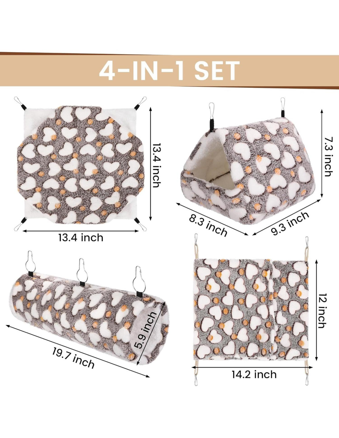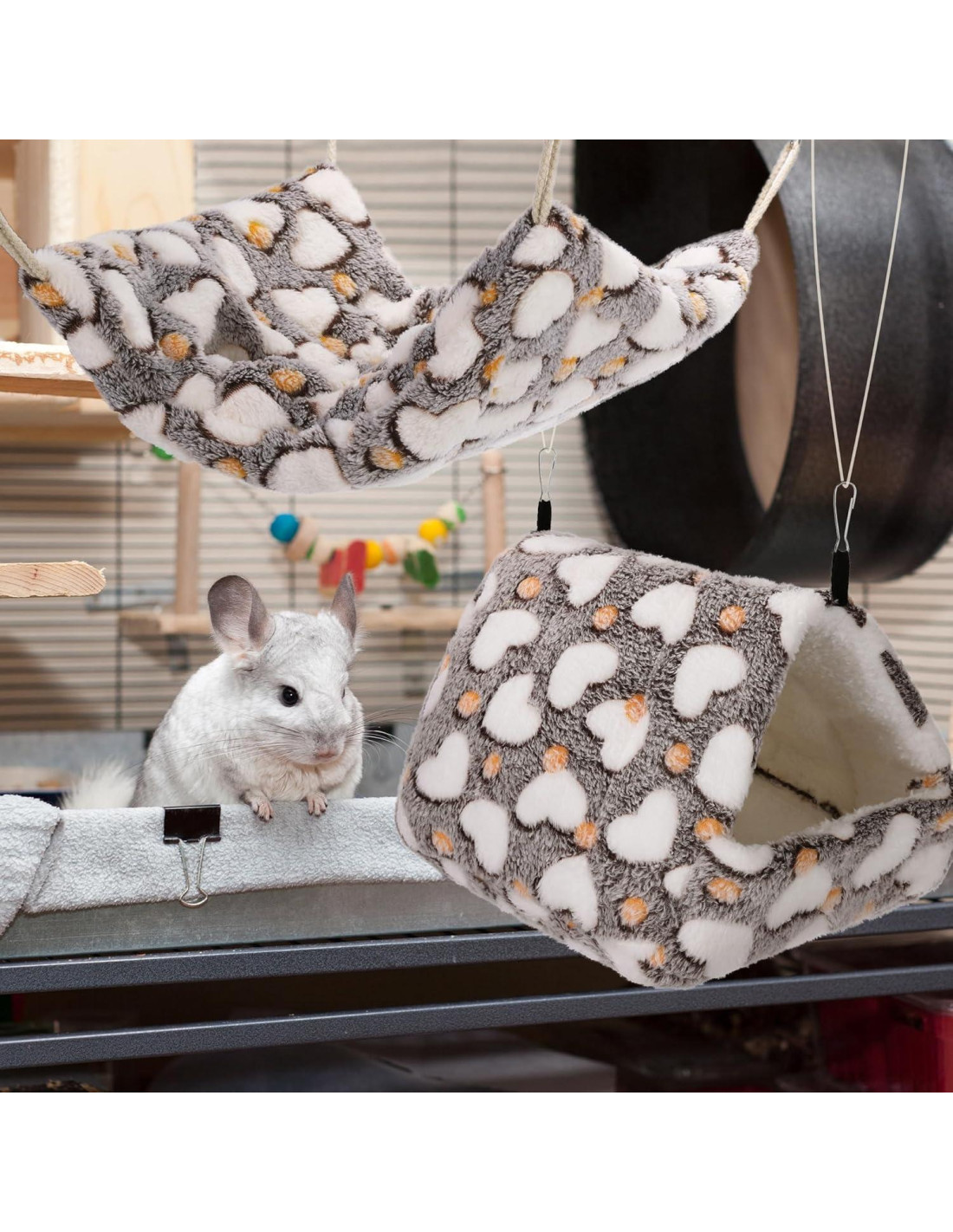 - Conjunto 4 en 1: recibirás 1 hamaca para hámster, 1 nido de felpa, 1 túnel cálido y 1 bolsa de dormir estilo sobre, todos adornados con patrones en forma de corazón para agregar un toque de calidez y cuidado al rincón de tu mascota, ofreciendo una opción de relajación acogedora; ya sea utilizado individualmente o colectivamente, estos accesorios para jaulas de mascotas pequeñas crean un espacio de actividad versátil para tu amigo peludo