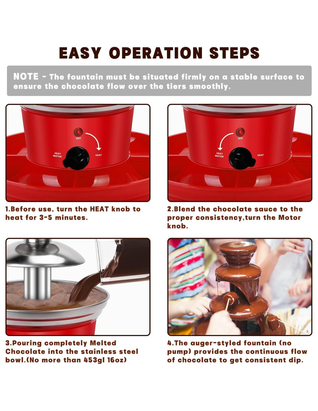 - FUENTE DE CHOCOLATE DE 3 NIVELES - Es fácil de ensamblar y desensamblar la máquina de derretir chocolate, muy fácil de configurar y limpiar, viene con bandeja de servicio desmontable, muy conveniente de usar y ahorra mucho espacio.