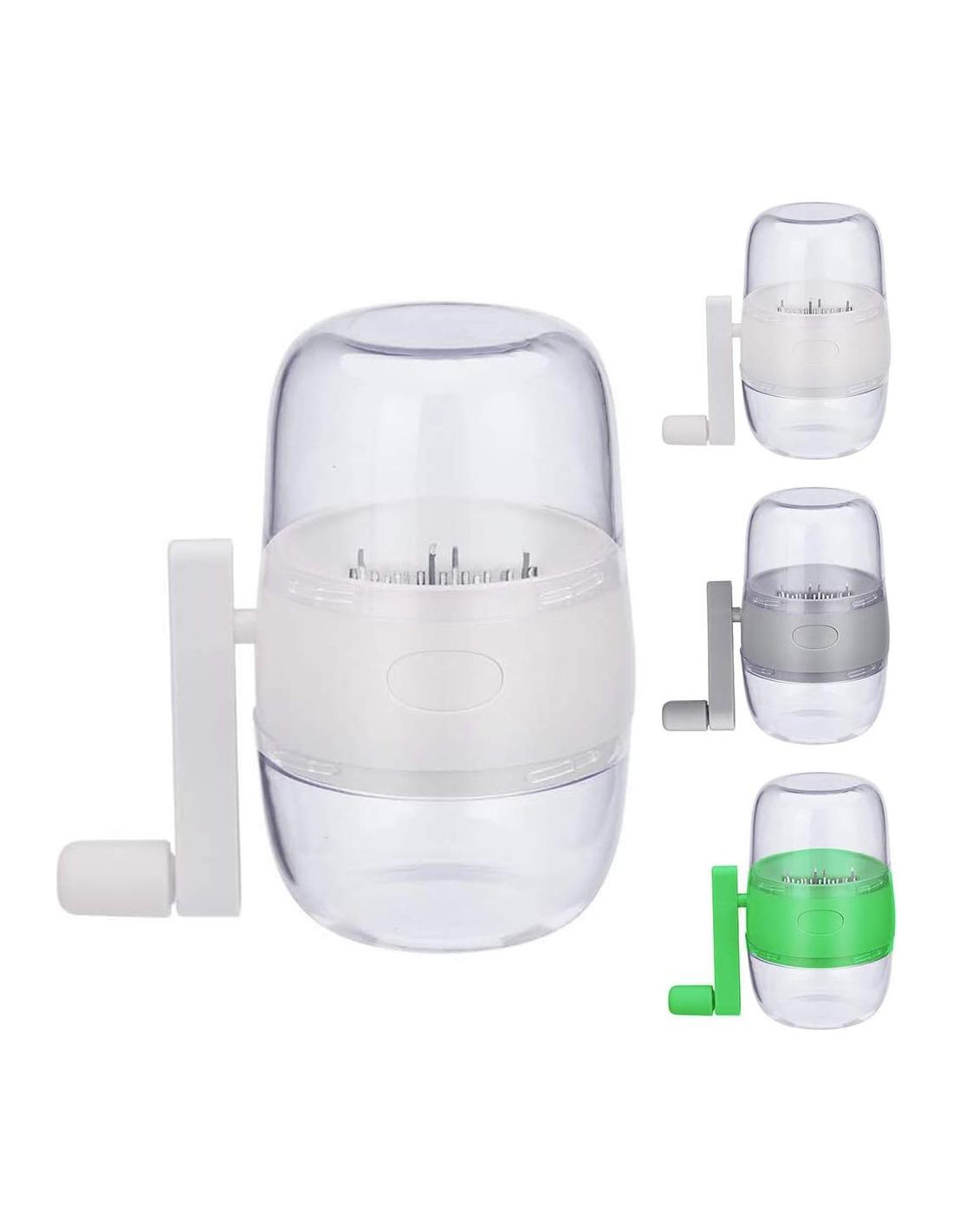 - MATERIAL: Molinillo manual hecho de gran material ABS y base, 16 cuchillas de acero inoxidable duraderas pueden triturar nueces de manera uniforme y eficiente, mango de picadora antideslizante. La parte inferior es un contenedor que puede contener las nueces trituradas, el medio es una cuchilla de acero inoxidable para triturar las nueces, y la parte superior es una taza para sostener las nueces sin que se caigan mientras se previene el salpicado.