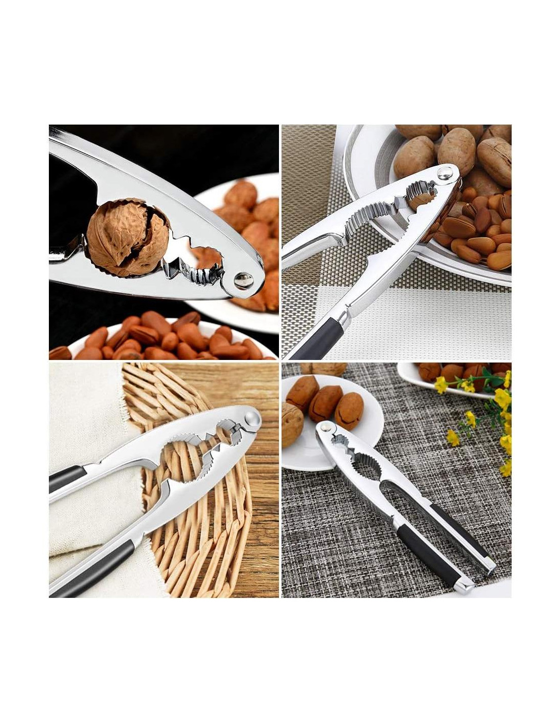- DISEÑO ÚNICO - Nuestras tenazas para nueces vienen con 2 muescas diferentes para nueces pecanas, nueces, avellanas, almendras, nueces de macadamia y nueces de Brasil. Pero tenga cuidado: no se pueden usar para nueces negras duras.