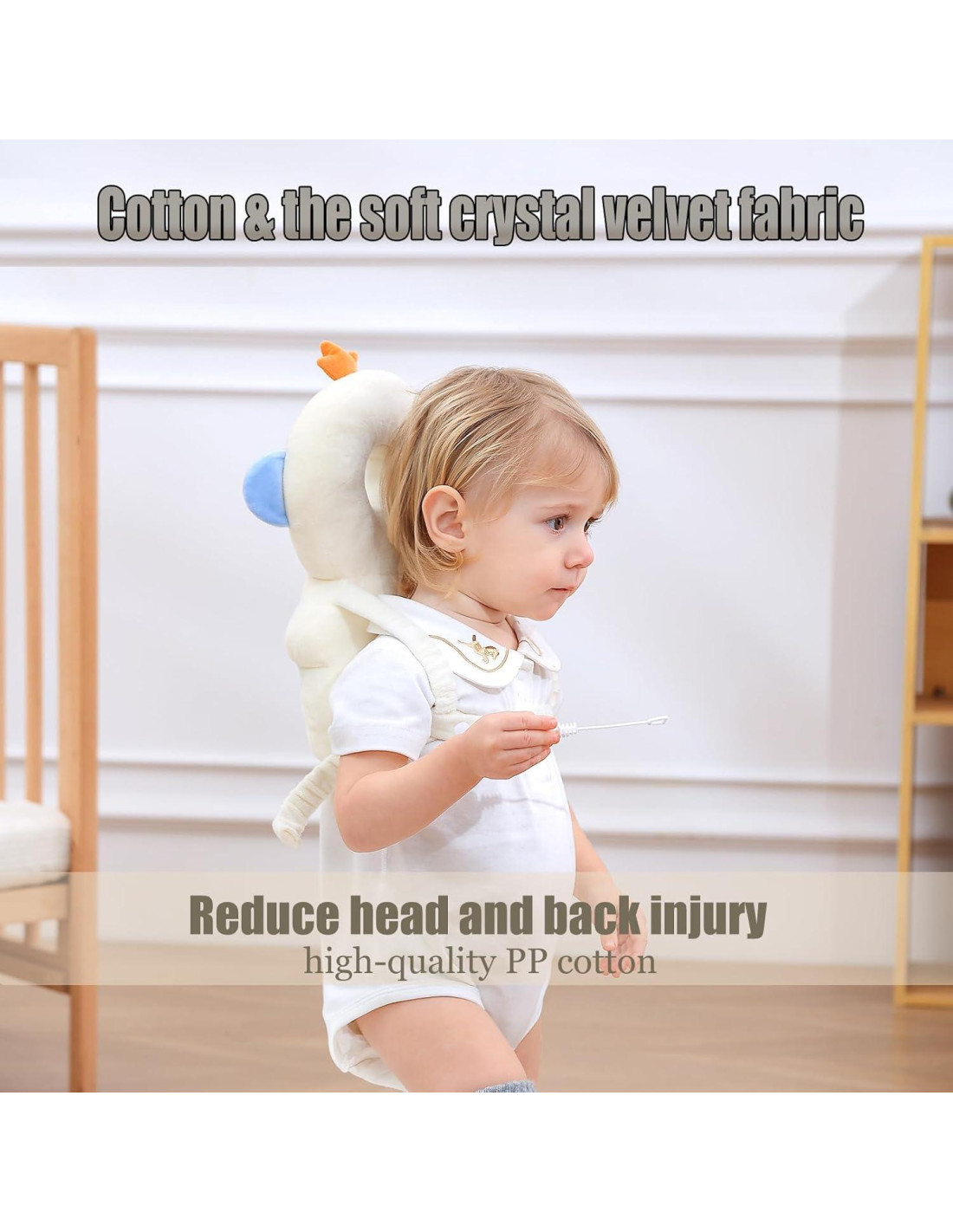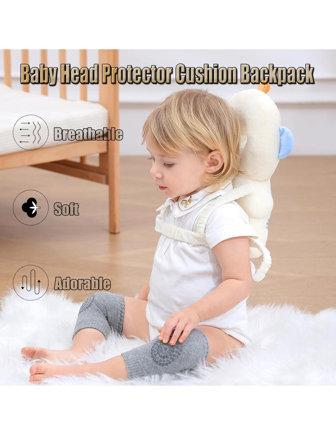 - Protección de Cabeza y Espalda: Reduce lesiones en la cabeza y la espalda, el protector de cabeza para bebé ayuda a proteger la cabeza y la parte trasera del bebé cuando están gateando y caminando.