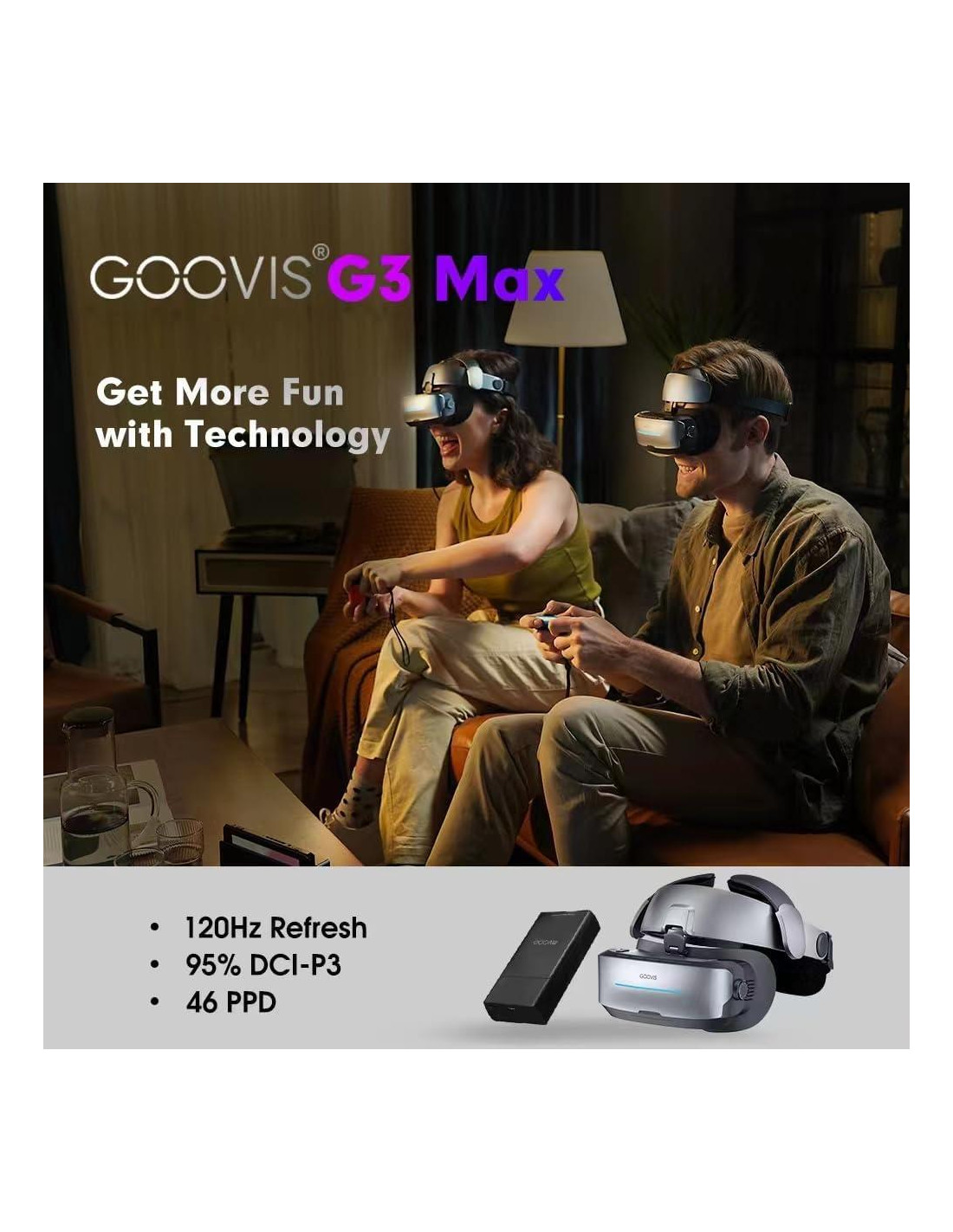 GOOVIS G3 Max es el HMD 5K OLED más avanzado, que cuenta con una alta resolución de 2560*1440, 3528PPI, FOV 65, y te ofrece una increíble experiencia cinematográfica y de juego inmersiva con alta calidad de imagen, sin borrosidad en los bordes ni efecto de puerta de pantalla. Con un chip inteligente incorporado y altavoces de vanguardia, G3 Max puede brindarte una verdadera experiencia 3D de Blu-ray. G3 Max tiene ajustes de dioptrías y distancia interpupilar para un confort óptimo de visualización.