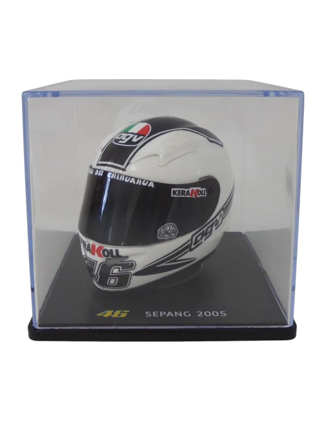 - Casco de motocicleta Valentino Rossi - miniatura a escala 1/5 (7x7 cms) - Visera removible, artículo de clip en base grabada (proporcionada)