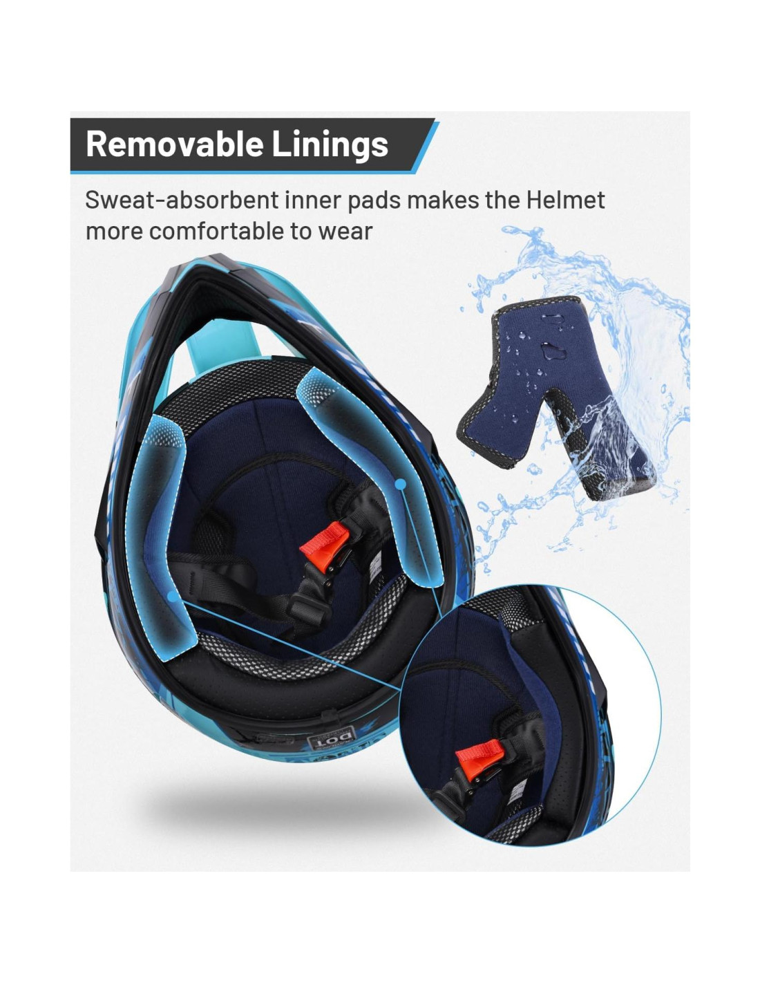 - [Diseño fácil de limpiar] - El forro y la almohadilla de mejilla removibles y lavables de este casco de motocross juvenil facilitan el mantenimiento. Adecuado para motocross, ATV, UTV, cuatro ruedas, este casco de ATV para niños proporciona protección, comodidad y estilo para la próxima aventura de su hijo