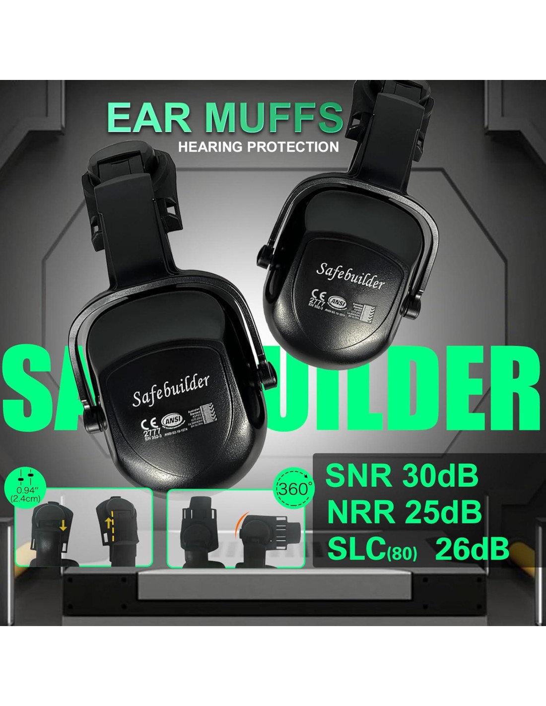 - [Ajuste Cómodo] Casco de Trabajo SAFEBUILDER con suspensión de 6 puntos, bueno para protección contra impactos cuando los trabajadores están en peligro, gran protección para la cabeza. El rango de ajuste del tamaño de la cabeza es de 53-63 cm / 20.87-24.80 pulgadas (53-63 cm), orejeras ajustables para un buen ajuste para protección auditiva.
