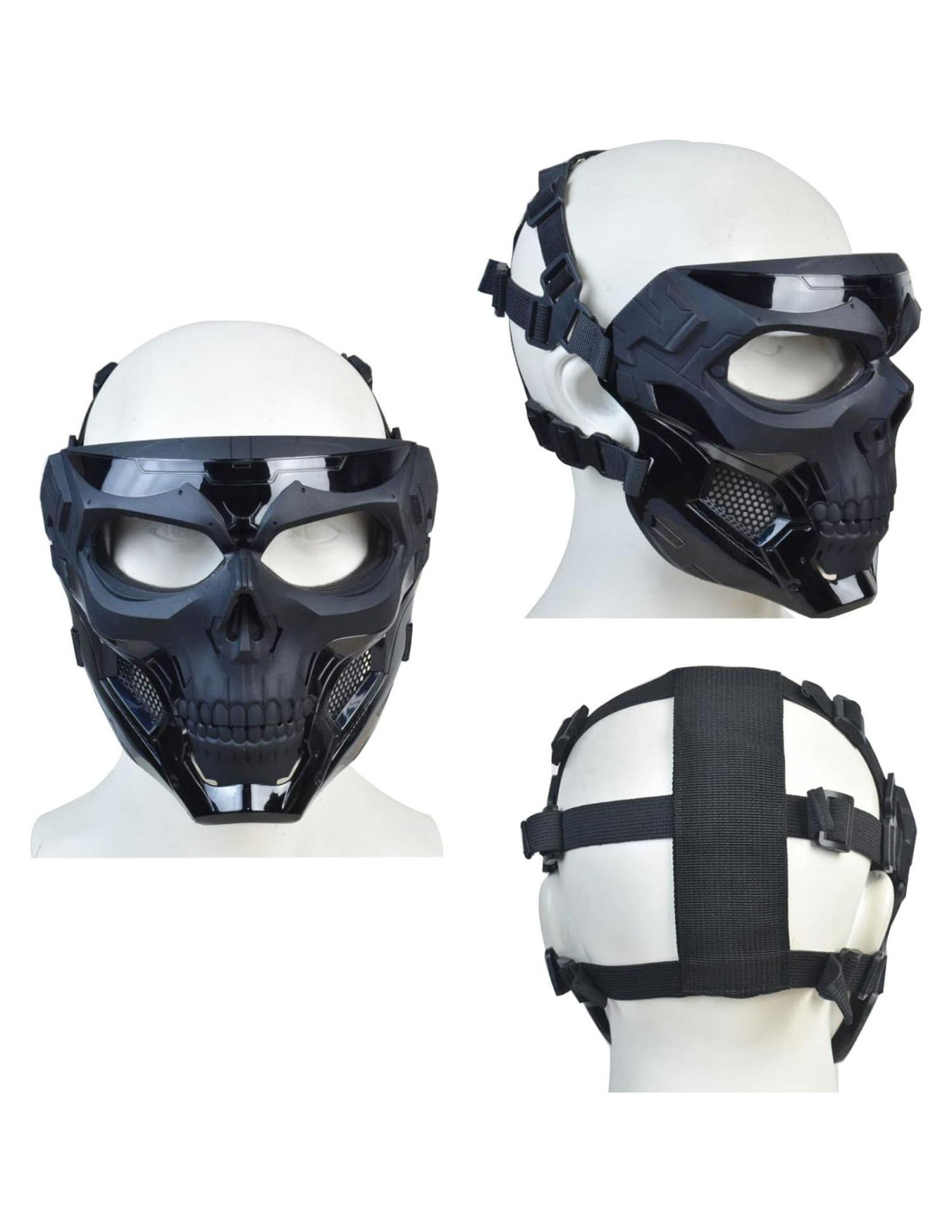 - Máscaras de cara completa de calavera con gafas, con correa elástica y esponja absorbente de impactos, cómodas, transpirables y a la moda. Compatibles con la mayoría de los cascos de airsoft y cascos de bicicleta, cascos de motocicleta. Nylon más fibra con excelente alta tensión, alta resistencia a la tracción y resistencia al envejecimiento.