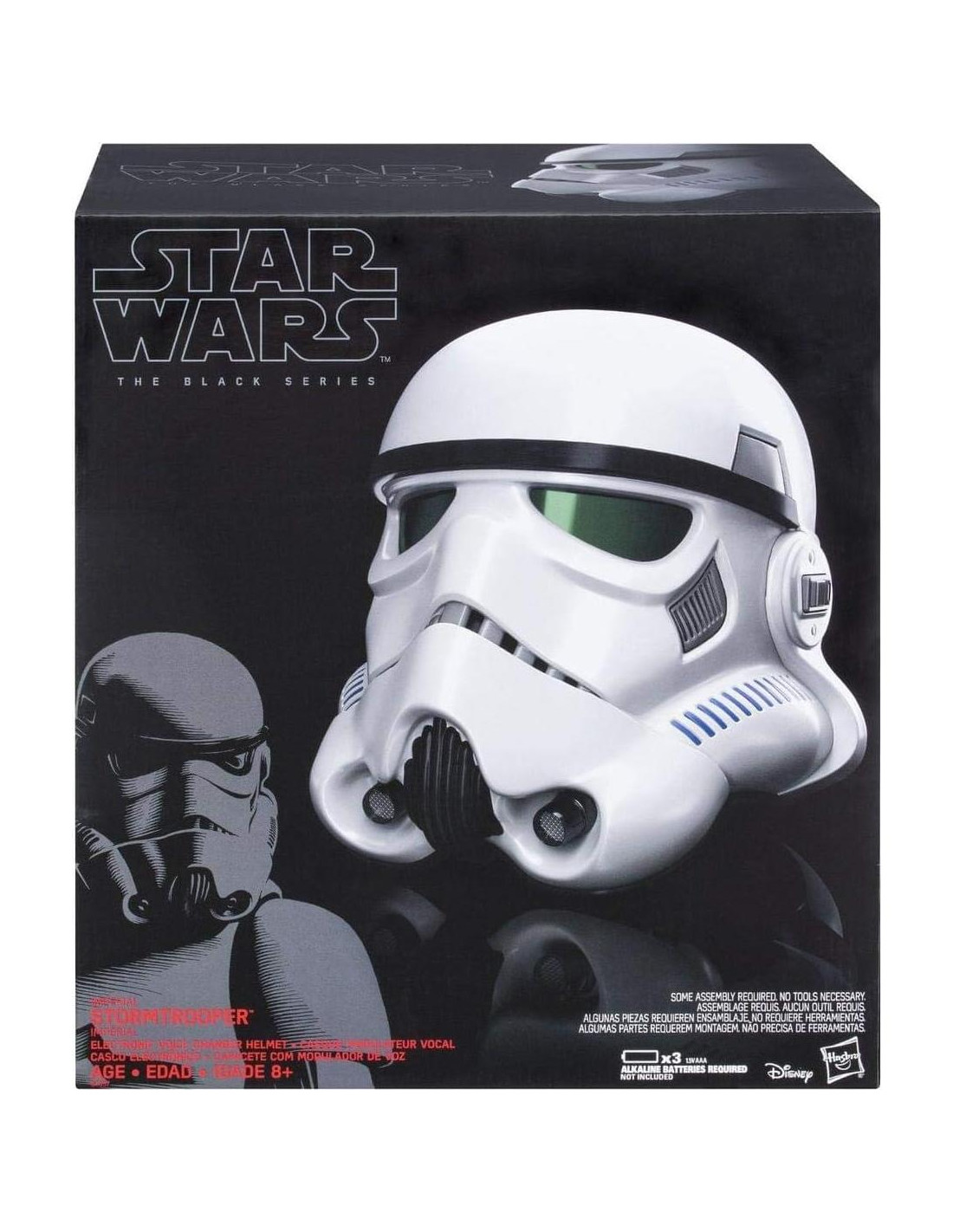 Caballeros Jedi, Señores Sith, Stormtroopers, X-Wings, Destructores Estelares, Caminantes AT-AT, droides, Wookiees, héroes rebeldes y más! Descubre las emocionantes historias del bien contra el mal en una galaxia muy, muy lejana con el Casco Electrónico Cambiador de Voz de Stormtrooper Imperial de La Serie Negra de Star Wars Rogue One. ¡Defiende el Imperio bajo el casco de un Stormtrooper Imperial con este casco electrónico que te transforma en un leal soldado Imperial! Con solo presionar un botón, tu voz se transforma en la de un Stormtrooper Imperial, las legiones sin rostro de soldados que sirven al Imperio Galáctico que, encerrados en armaduras blancas, son leales Imperiales que se someten a un riguroso entrenamiento. ¡Recrea los momentos de aventura más intensos y combativos de Star Wars: Rogue One con esta reproducción precisa del Casco Electrónico Cambiador de Voz de Stormtrooper Imperial! Construye tu colección de Star Wars con este auténtico y altamente detallado Casco Electrónico Cambiador de Voz de Stormtrooper Imperial que es una réplica fiel de la historia del casco de un Stormtrooper Imperial de Star Wars: Rogue One! Con un diseño característico, múltiples puntos de articulación y características realistas en figuras, vehículos, cascos, sables de luz y más, La Serie Negra encarna la calidad y el realismo de la saga de Star Wars que es amada por los devotos de Star Wars, jóvenes y mayores. Colecciona este y otros productos de élite de Star Wars La Serie Negra, y conmemora momentos de batalla de Star Wars: Rogue One con el Casco Electrónico Cambiador de Voz de Stormtrooper Imperial de Hasbro Star Wars. Artículos adicionales se venden por separado. Los productos de Star Wars son producidos por Hasbro bajo licencia de Lucasfilm Ltd. Hasbro y todos los términos relacionados son marcas registradas de Hasbro.