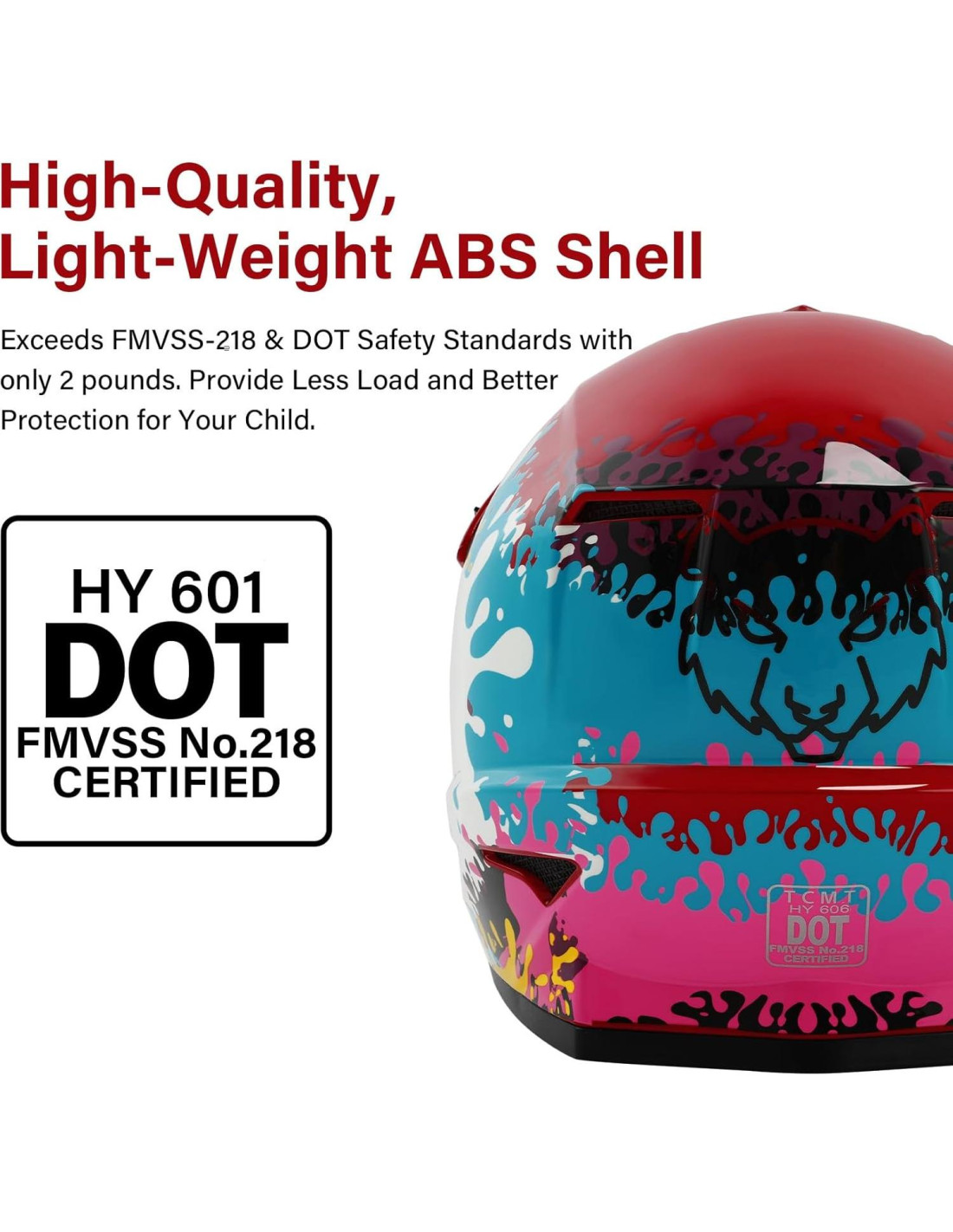 - DIVERTIDOS VIAJES Y REGALOS - Varios diseños de patrones interesantes y de moda hacen que este casco sea divertido y genial; Ideal para niños jóvenes en dirt bike, off-road, conducción en la calle, etc., absolutamente un dulce regalo de cumpleaños/Navidad para los niños