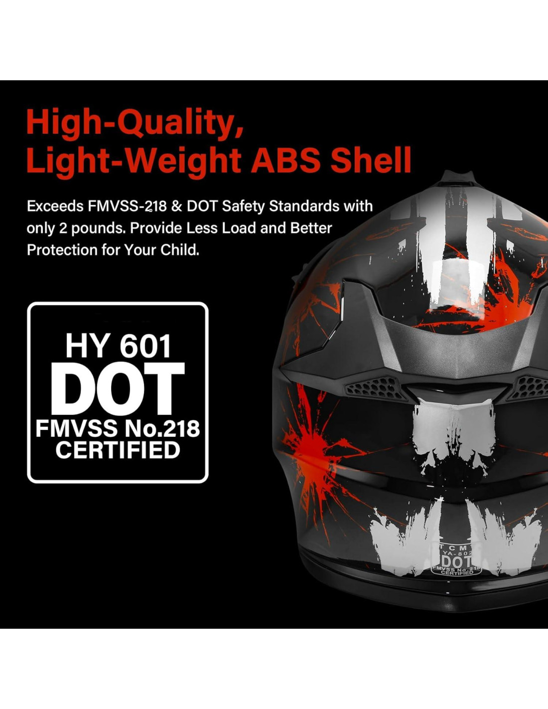 - DIVERTIDOS VIAJES Y REGALOS - Varios diseños de patrones interesantes y de moda hacen que este casco sea divertido y genial; Ideal para niños jóvenes en motocross, off-road, conducción en la calle, etc., absolutamente un dulce regalo de cumpleaños/Navidad para los niños