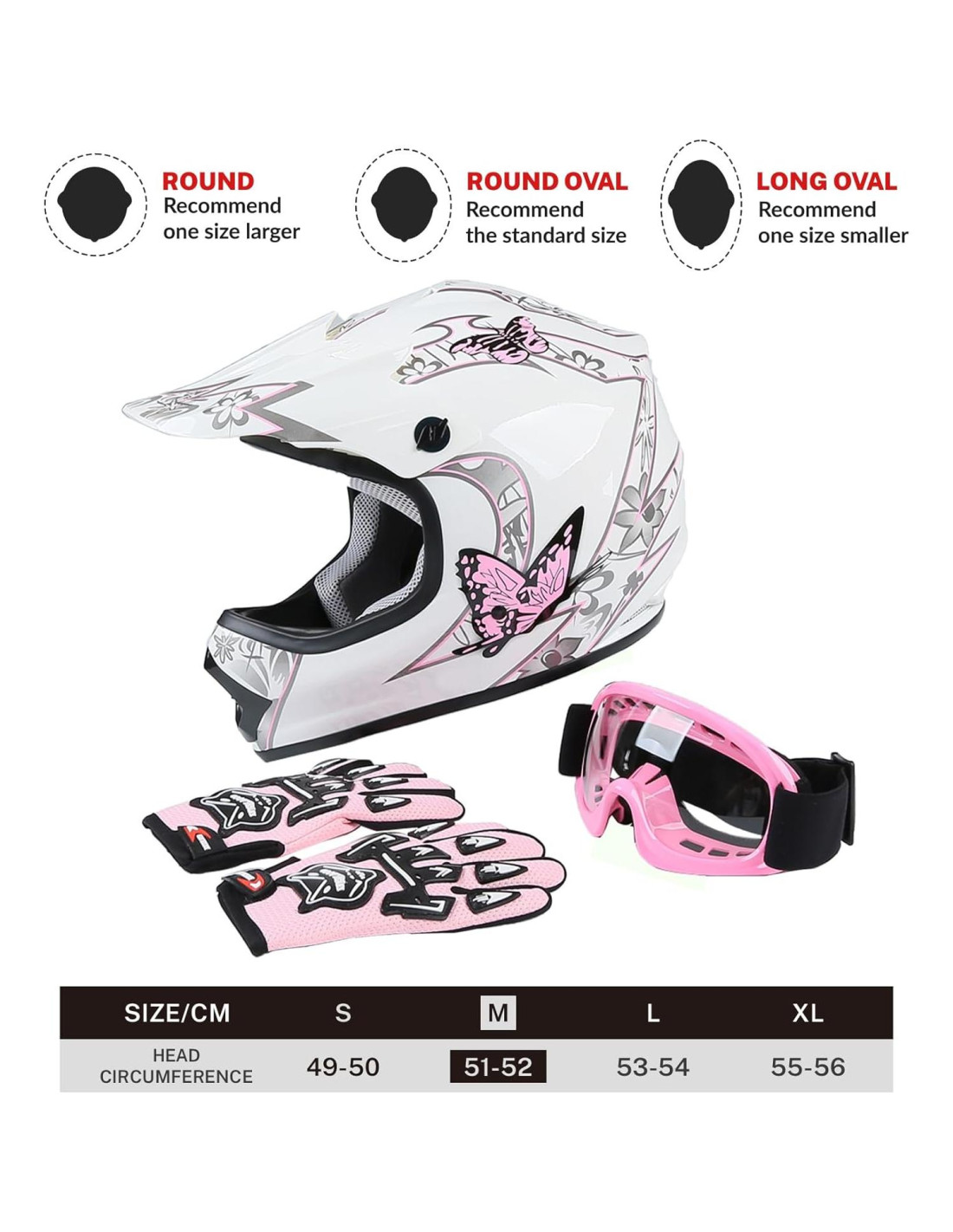 - Característica especial: Casco de Motocross para Niñas Mariposa Rosa DOT para Niños Jóvenes ATV Off-Road Dirt Bike Casco de Cara Completa+Guantes+Gafas Mediano